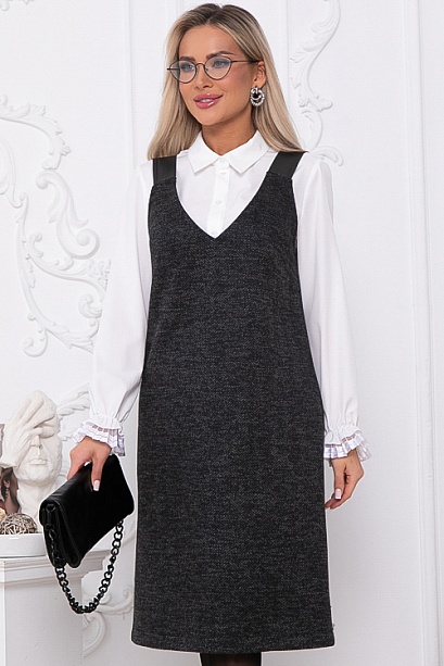 * Сарафан  трапецевидного силуэта из трикотажного полотна в елочку.Лямки из эко кожи.
