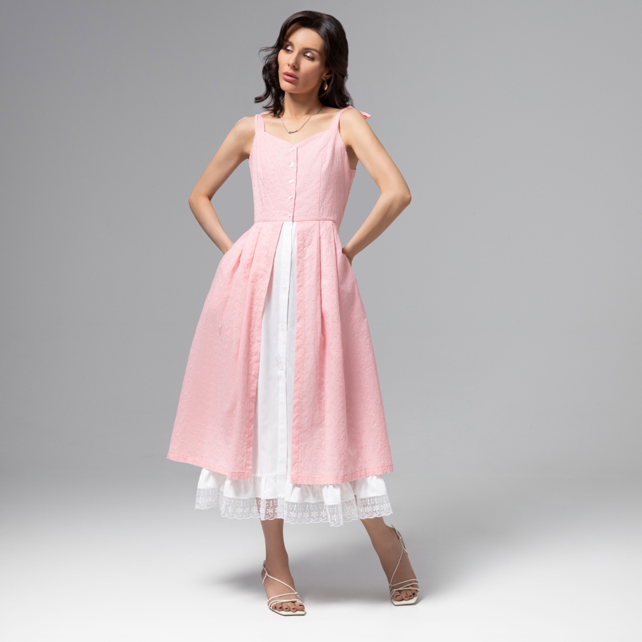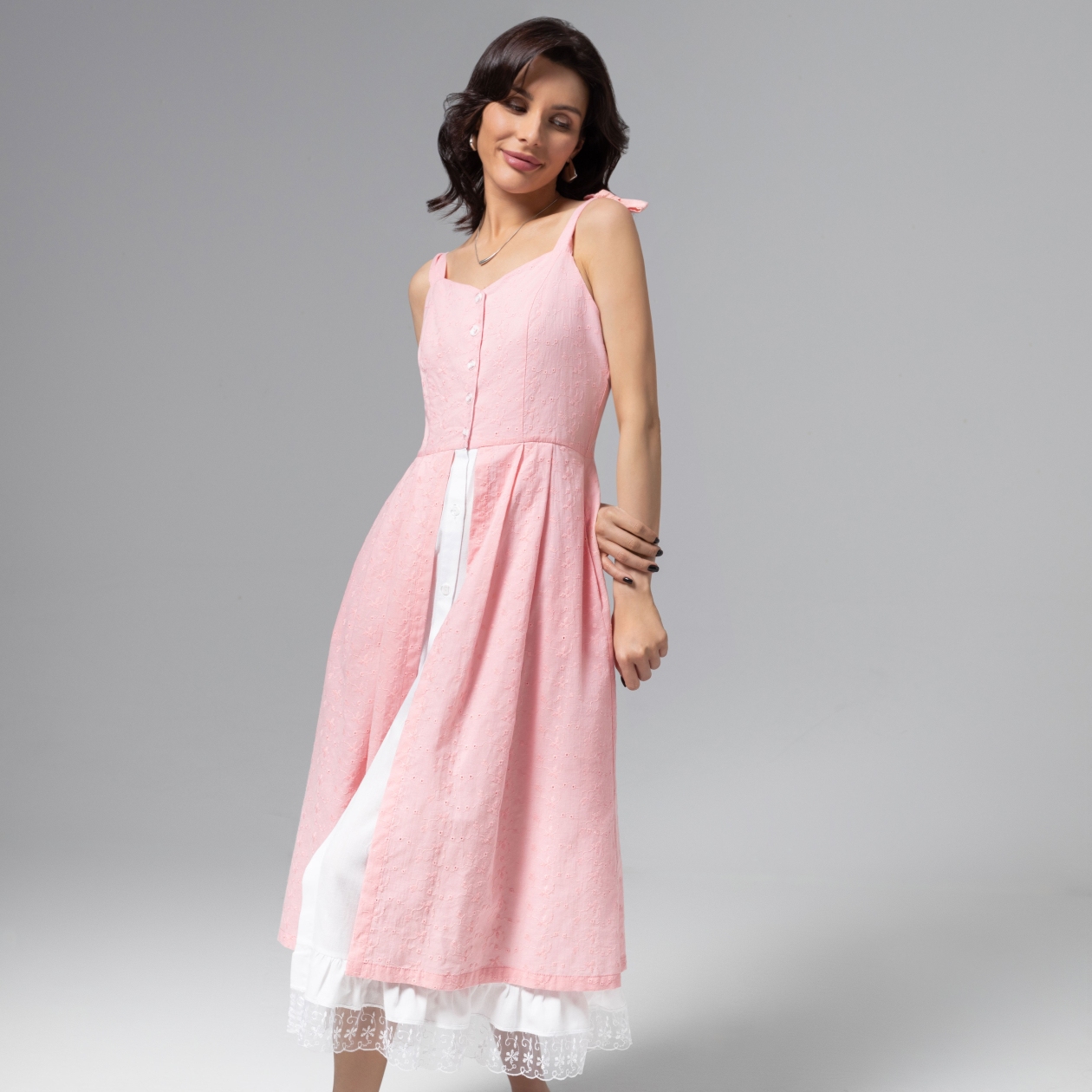 Быть загадочной женщиной со страниц великих романов. Легко в сарафане ЧАРУТТИ из коллекции PREMIUM. Аристократичный образ подкреплен вашей уверенностью в безупречном пошиве изделия. Сарафан приталенного силуэта в длине миди их хлопка. Выверенный крой с имитацией многослойности. Завязки на бретелях позволяют регулировать длину. Изделие с карманами.