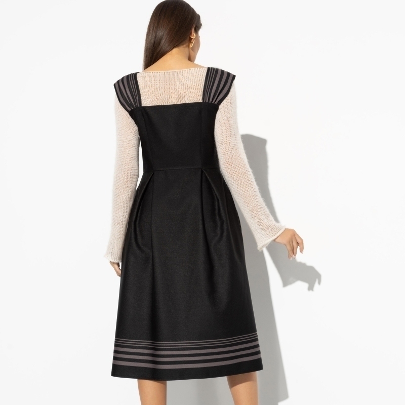 Он часто называл тебя принцессой, в конце концов, ты ею и стала. Сдержанность, элегантность и высокое внутреннее достоинство воплотились в сарафане CHARUTTI. Сарафан в длине миди. Приталенный силуэт, расклешенный фасон юбки. Широкие бретели. Сарафан застегивается на пуговицы по всей длине изделия.