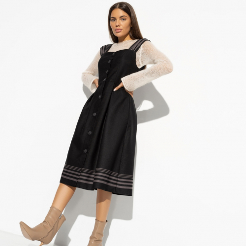 Представьте сарафан, который становится центром внимания, где бы вы ни находились. Изящный приталенный силуэт подчеркивает фигуру, а расклешенная юбка придает шарм и таинственность. Все эти элементы делают сарафан безукоризненным выбором как для офиса, так и для вечернего мероприятия. Оптовая закупка этих сарафанов — это не только инвестиция в стиль и комфорт, но и способ уверенно заявить о вашем корпоративном имидже. Застежка на пуговицах по всей длине изделия добавляет практичности, придавая сарафану незаменимость в гардеробе каждой модницы.