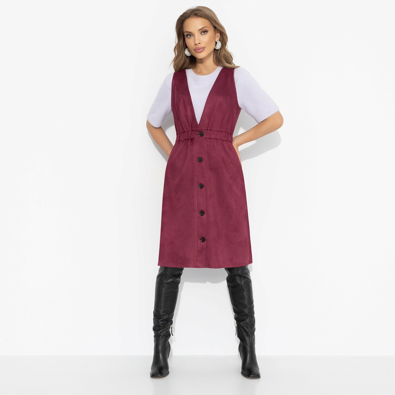 Сарафан из мягкой экозамши, Магическая сила (бордо)
