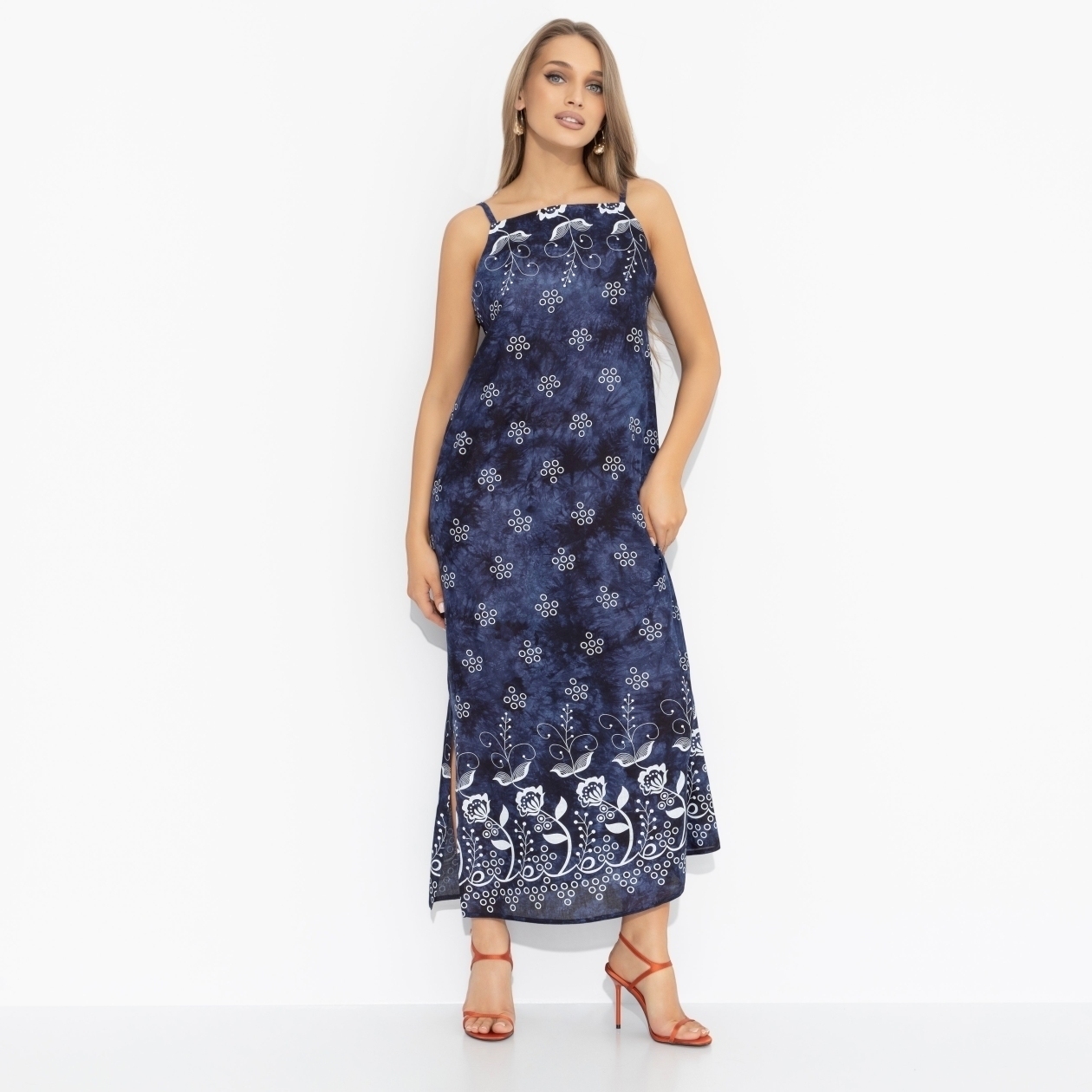 Ты оказалась на пароходе неслучайно. Прогулка по реке обернулась для тебя судьбоносной встречей. Из двух сотен пассажирок капитан выбрал тебя в спутницы жизни. Потому что в сарафане ЧАРУТТИ тебя нельзя было не заметить. Сарафан в длине миди. Посадка по фигуре. Тонкие бретели не регулируются. Эффектный принт. Деликатные разрезы по бокам изделия.