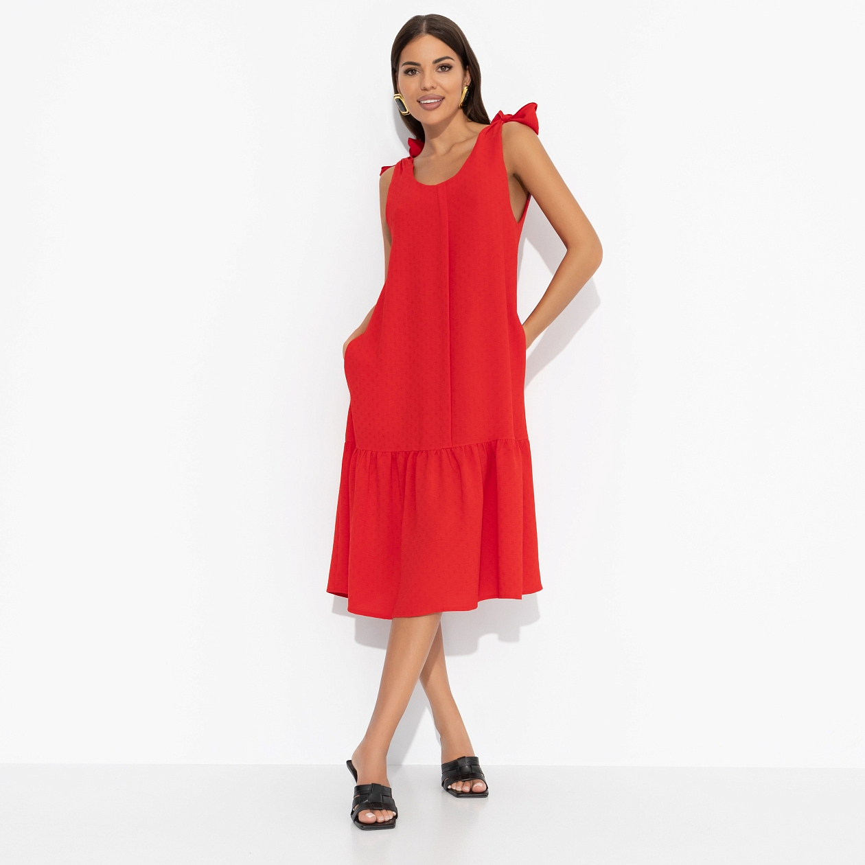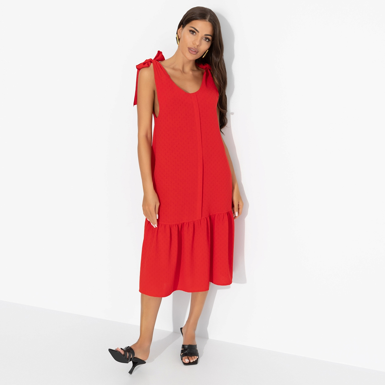 Chao, беллы! Есть ли что-то более восхитительное в этом мире, чем сарафан в красном цвете?! В нём вся страсть к жизни, привлекательность и игривость. Выбирайте жить ярко в сарафане ЧАРУТТИ. Сарафан в длине миди. Расклешенный силуэт. Хорошо смотрится на любом типе фигуры. Бретели-завязки. Изделие с карманами. Материал изделия текстурный.