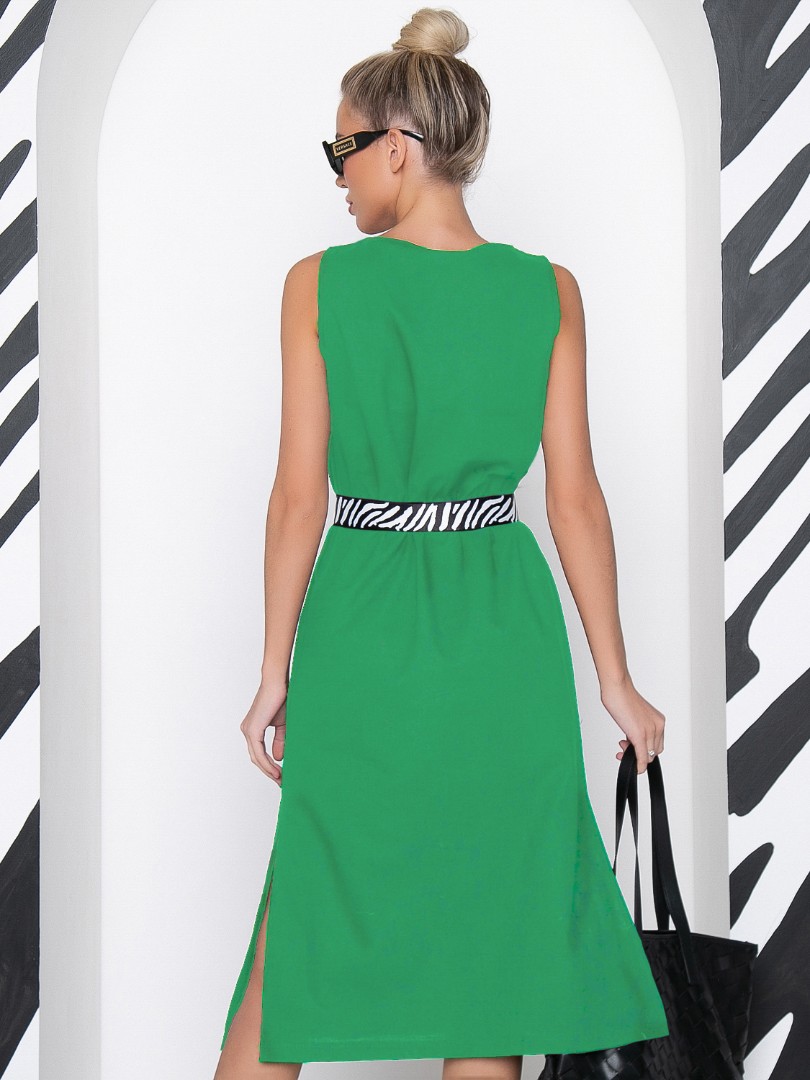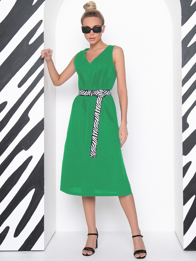 зеленый Сарафан А - силуэта из льна со съемным поясом из отделочной репсовой ленты.