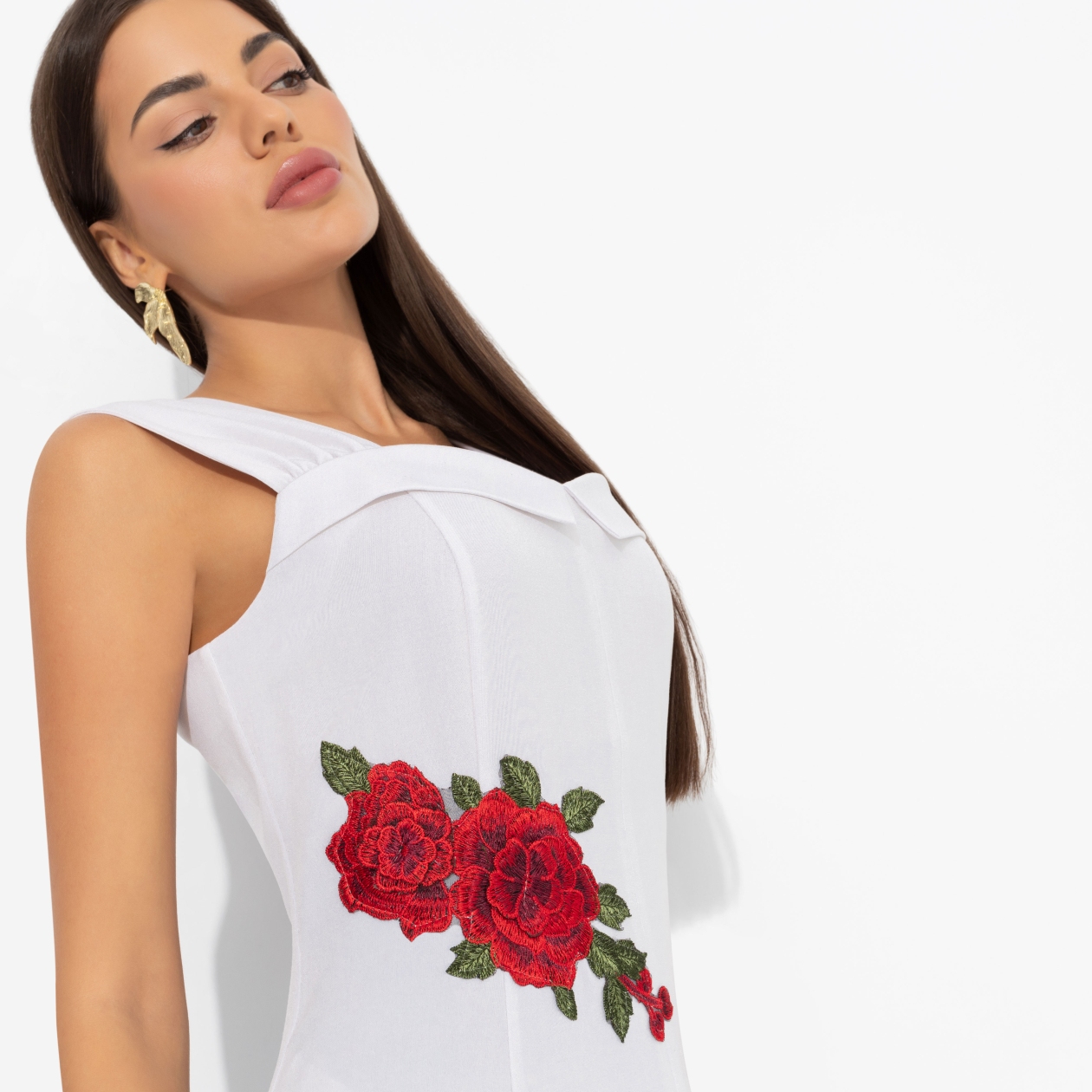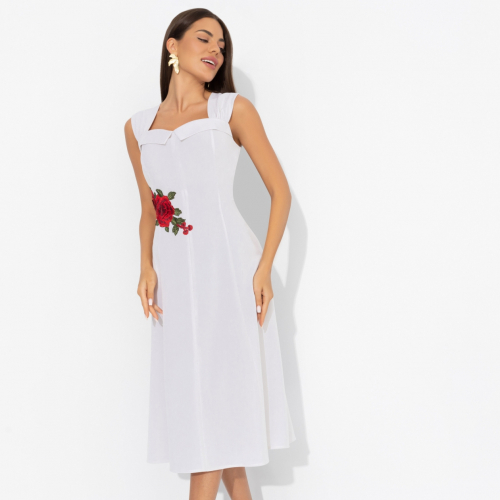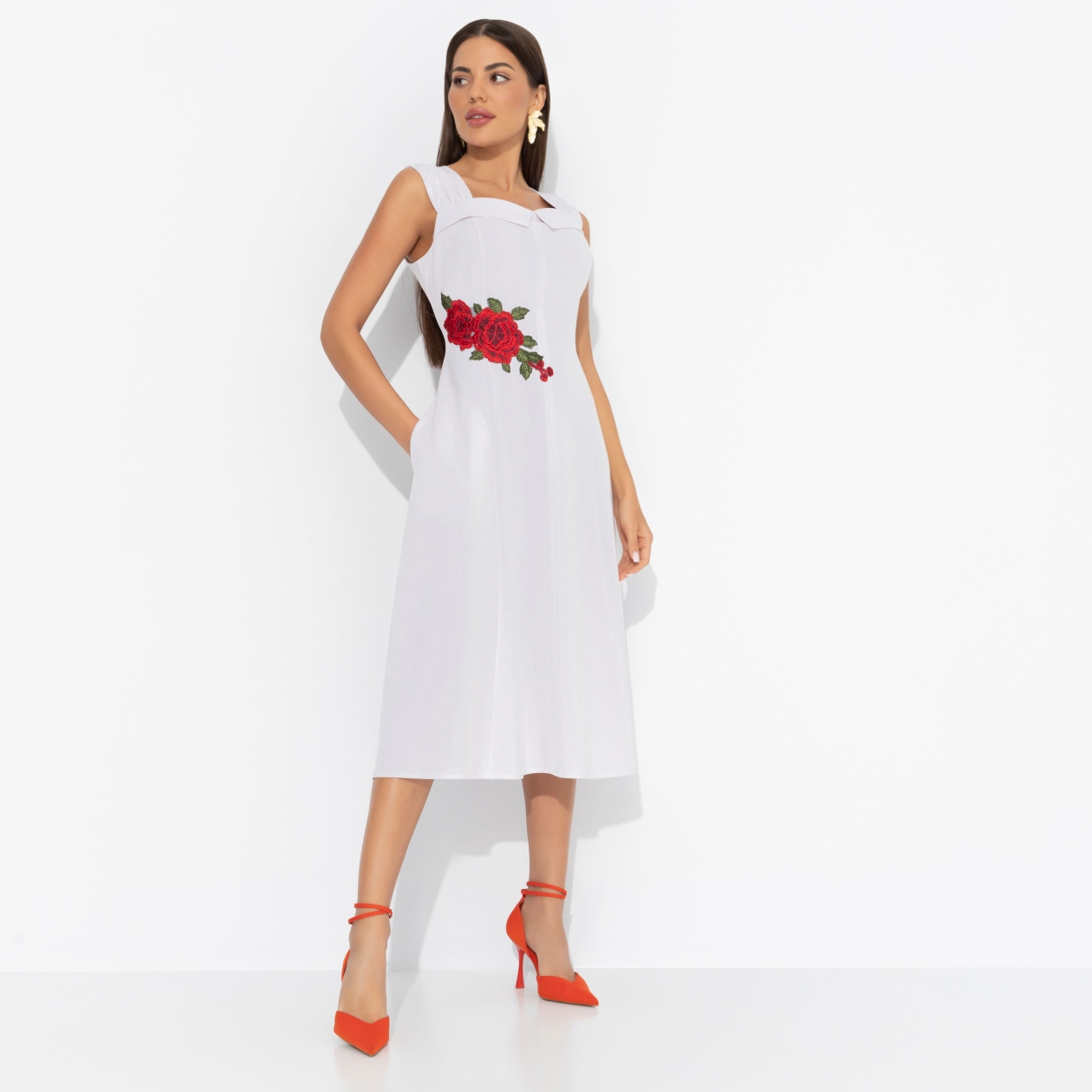 Ты оставила в его сердце настолько же яркий след, как роза на белоснежном сарафане CHARUTTI. Контраст выглядит эффектно, как и ты на фоне всех остальных рутинных дел. Именно за умение выделяться он тебя и ценит. Сарафан приталенного силуэта, отлично сидит по фигуре. Длина миди. Вышивка объемная. Изделие с карманами.