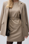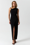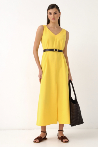 Сарафан длины миди с разрезом по переду. Модель приталенного силуэта. Vобразный вырез горловины, спереди разрез. Пояс из основной ткани в комплекте.