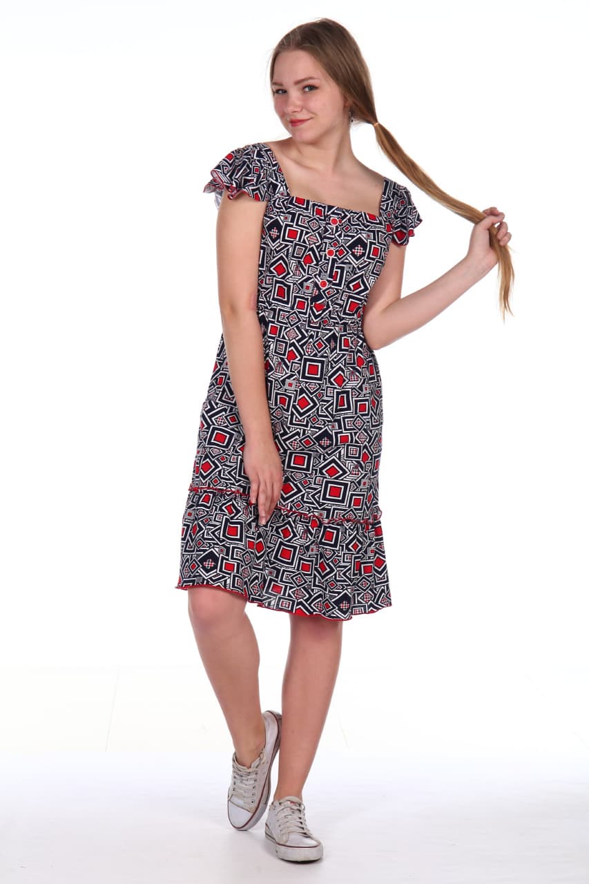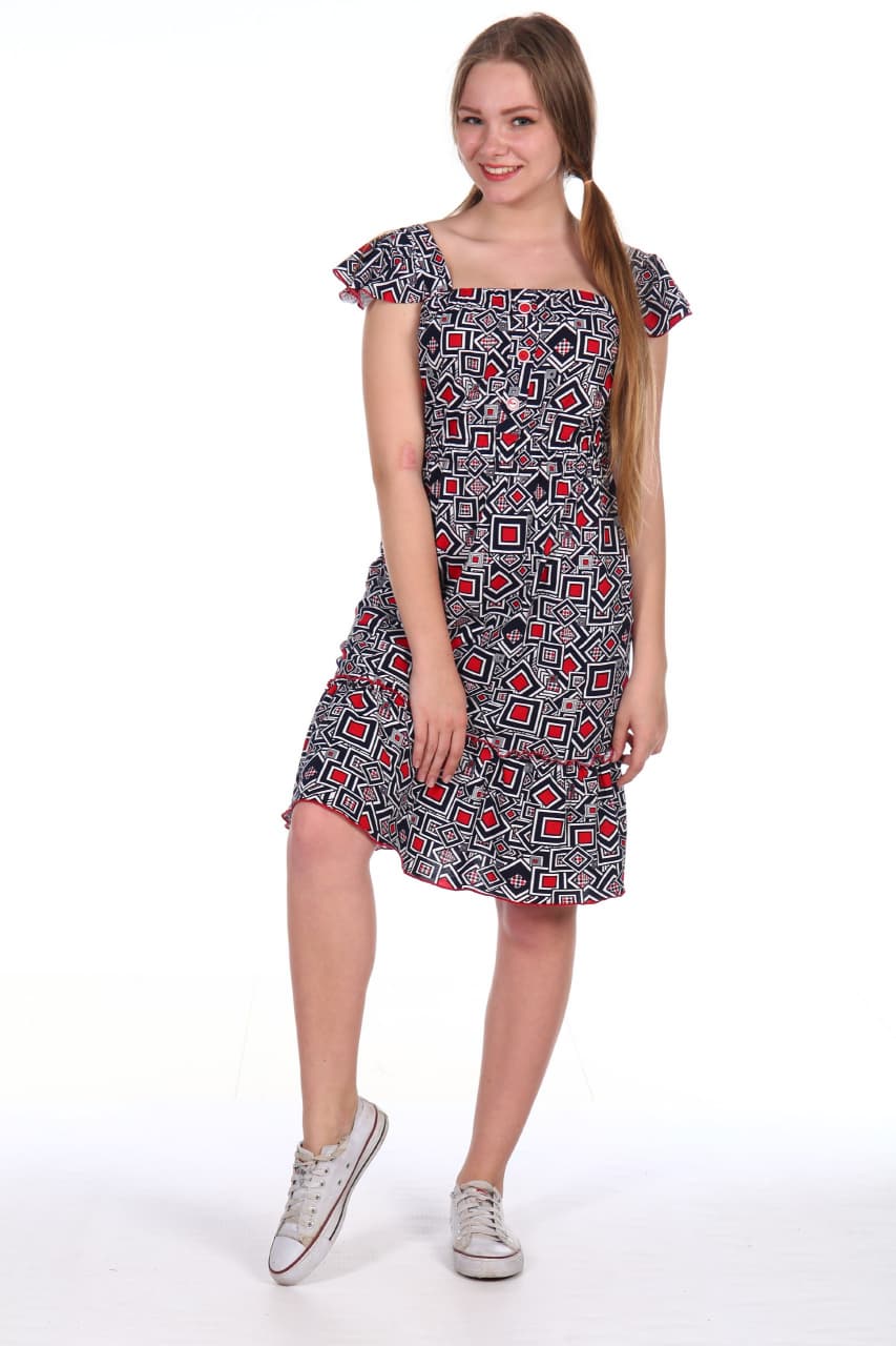 Удобный и лёгкий летний сарафанчик с карманами, короткий маленький рукав "крылышко", по низу пришит волан. Горловина и линия талии на резиночке, декоративная планка с пуговками. Ткань кулирка.