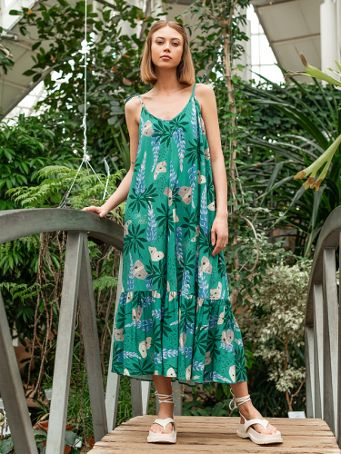 Изящный сарафан женский макси — идеальный выбор для тех, кто ценит женственность и комфорт. А-образный силуэт красиво подчеркнет фигуру, а глубокая V-образная горловина добавит изюминку и шарм. Текстильный сарафан из нежной вискозы станет украшениемгардероба каждой модной женщины. Невероятно удобен и подходит для любой ситуации. Горловина элегантности, а сборка по центру спинки делает сарафан по-настоящему уникальным. Сарафан с бретелами, которые завязываются на бантик, на концах находятся красивые бусины. Эти элементы придают наряду еще больше красоты. Самая яркая деталь этого летнего платья на бретельках — это его отрезная широкая рюша, идущая по нижней части наряда. Она добавляет сарафану женственности, делая его более изящным и воздушным. Надевайте его на пляж, прогулки, шоппинг с подружкой или отправляйте в отпуск на море. Сарафан не только красивый, он также очень удобен и легок в носке. Станет настоящим украшением гардероба каждой девушки. Радуйте себя и окружающих, купите этотпрекрасный сарафан прямо сейчас!