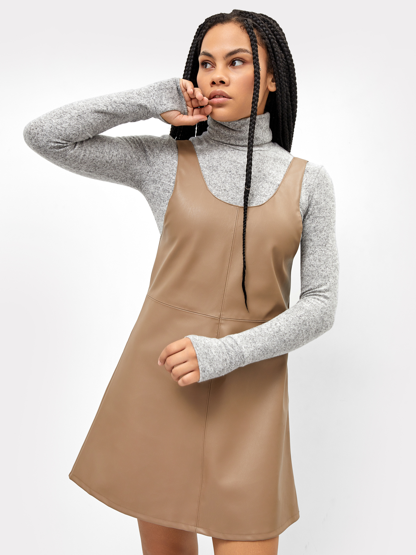 Сарафан женский из экокожи в бежевом цвете