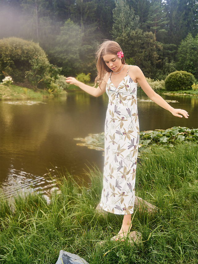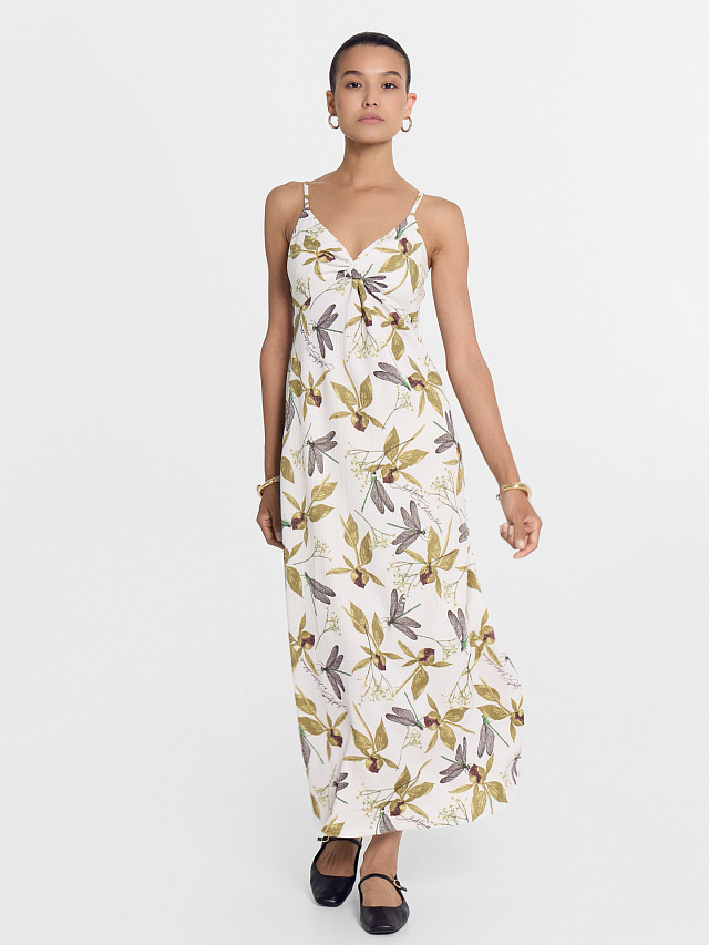 Элегантный женский сарафан прилегающего силуэта на тонких бретельках – воплощение стиля и женственности. Представленная модель, выполненная из высококачественной ткани, демонстрирует сочетание безупречного кроя, комфорта и изысканного дизайна. Благодаря продуманным деталям, этот сарафан станет идеальным дополнением вашего гардероба, как для торжественных мероприятий, так и для повседневных аутфитов. Передняя деталь украшена фигурным подрезом под грудью, создающим эффектный акцент и подчеркивающим изящество линий фигуры. Элегантный перекрут в верхней части придает утонченности. Идеально садится по фигуре, обеспечивая комфорт и свободу движений на протяжении всего дня. Широкий размерный ряд. Рекомендуем для изящных летних образов!