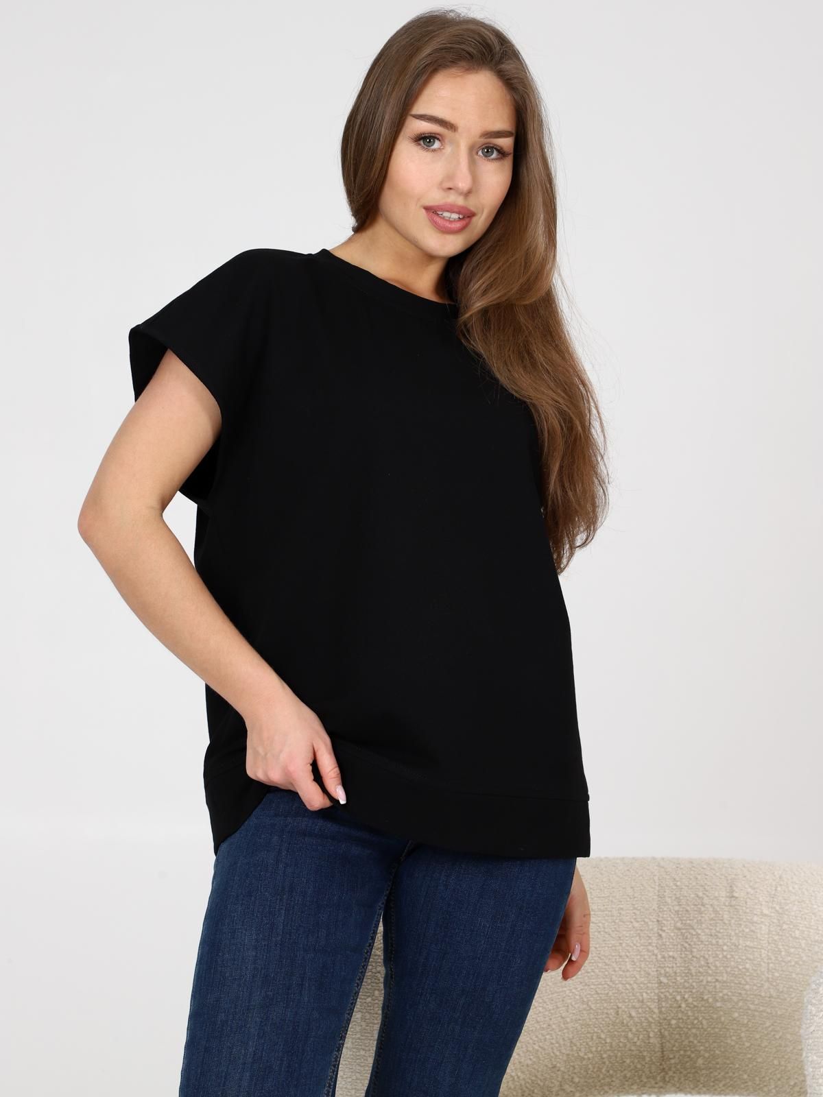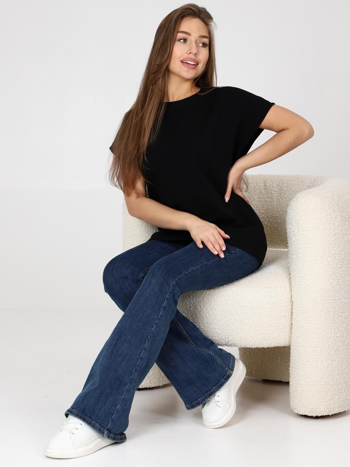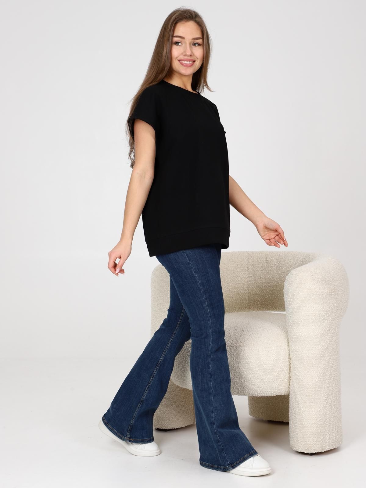 Футболка женская из футера с лайкрой свободного силуэта, круглым вырезом горловины, цельнокроеными короткими рукавами.