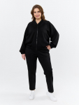 Костюм молодежный из гладкокрашеного трикотажного полотна «футер- трехнитка», состоящий из джемпера и брюк овальной формы, обработанной втачной планкой и притачным поясом по низу. Рукава – с притачными манжетами. Манжеты, планка горловины и пояс выполнены из полотна «кашкорсе» такого же цвета, как и основной материал. На полочке застрочены декоративные складочки-защипы, расположенные симметрично относительно линии центра. Брюки – длинные, на притачном поясе с эластичной тесьмой внутри и манжетами по низу. Передние половины – из двух частей каждая, со смещением соединтельных швов в сторону боковых срезов. Соединительные швы передних половин обработаны с карманами. Пояс и манжеты выполнены из трикотажного полотна «кашкорсе».
