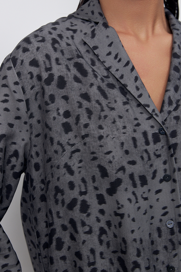 Блуза из вискозной ткани свободного силуэта с застёжкой на пуговицы. Втачной длинный рукав. Вырез горловины оформлен английским воротником, который визуально сделает фигуру стройнее и подчеркнет красивую линию груди.