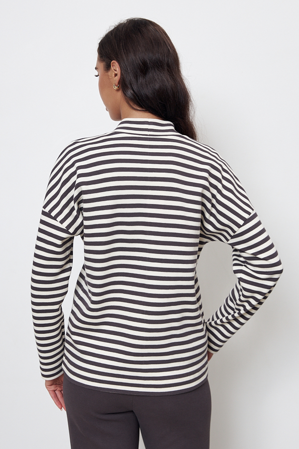 Кардиган из эластичного полотна свободного силуэта. Втачной длинный рукав в спущенную пройму. Линия борта обработана притачной планкой с застёжкой на пуговицы.