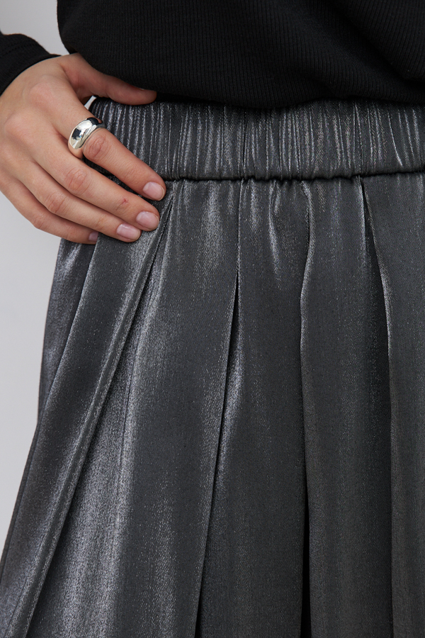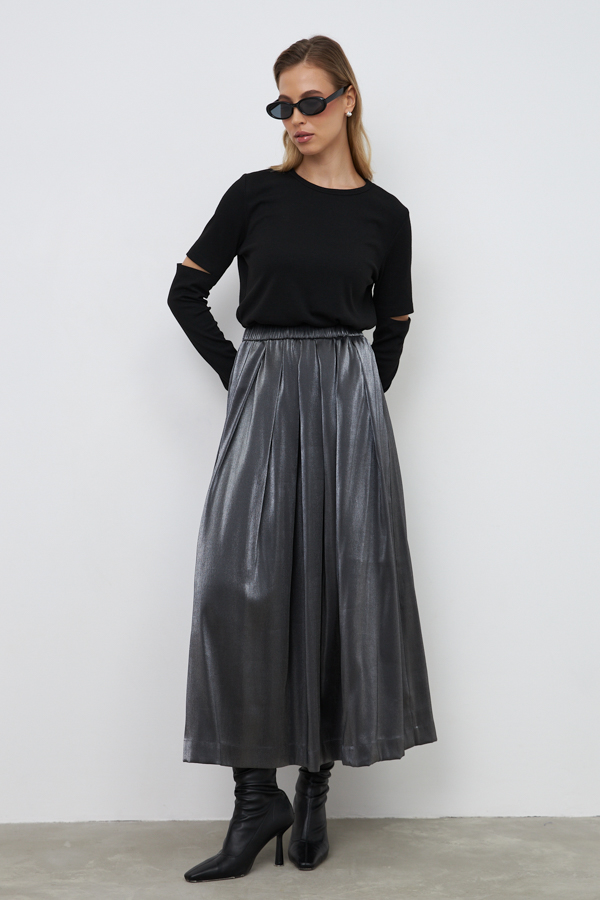 Юбка из вискозной ткани свободного силуэта со складками по линии талии. Пояс с эластичной резиной.