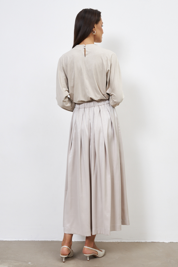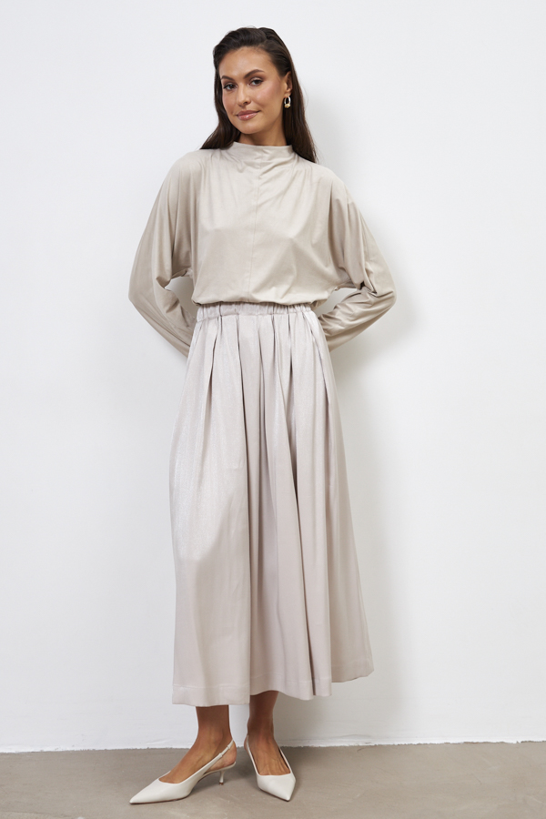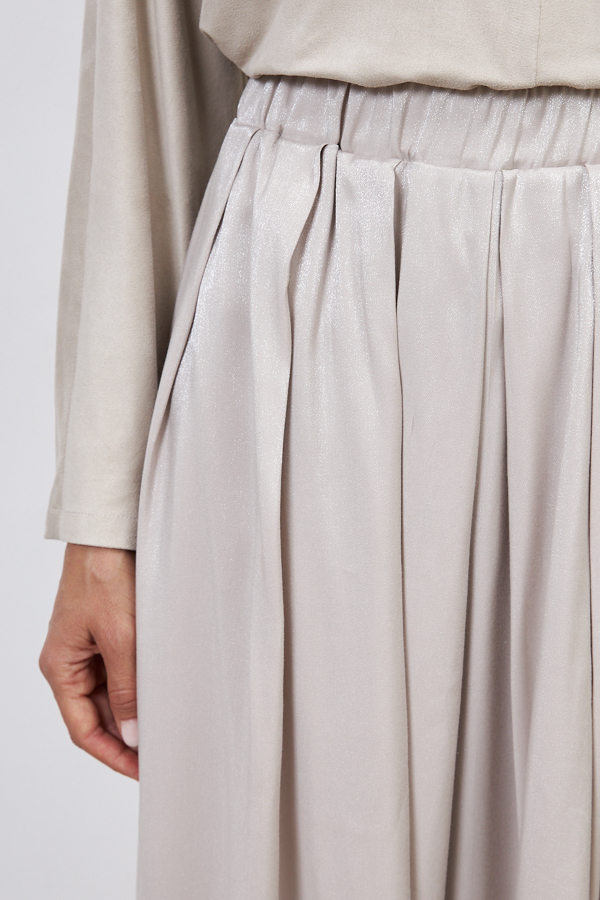 Юбка из вискозной ткани свободного силуэта со складками по линии талии. Пояс с эластичной резиной.