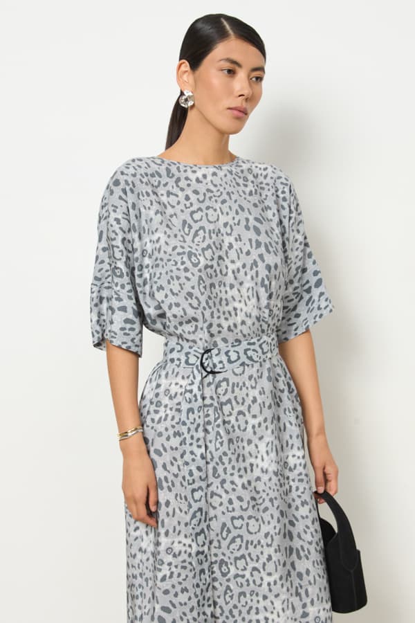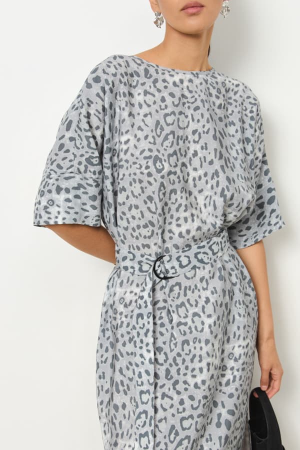 Платье из модала свободного силуэта с разрезом в боковом шве. Круглый вырез горловины окантован косой бейкой из основной ткани. Цельнокроеный рукав с притачной манжетой. В комплекте - пояс из основной ткани. В таблице размеров представлены параметры человека, а не изделия.