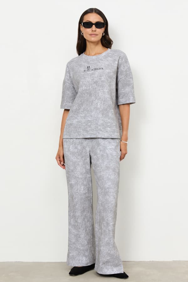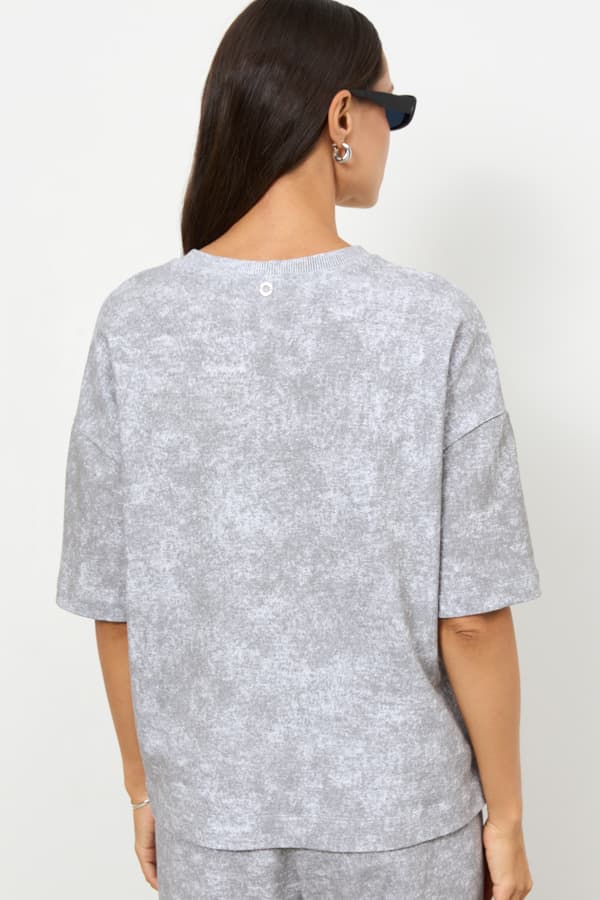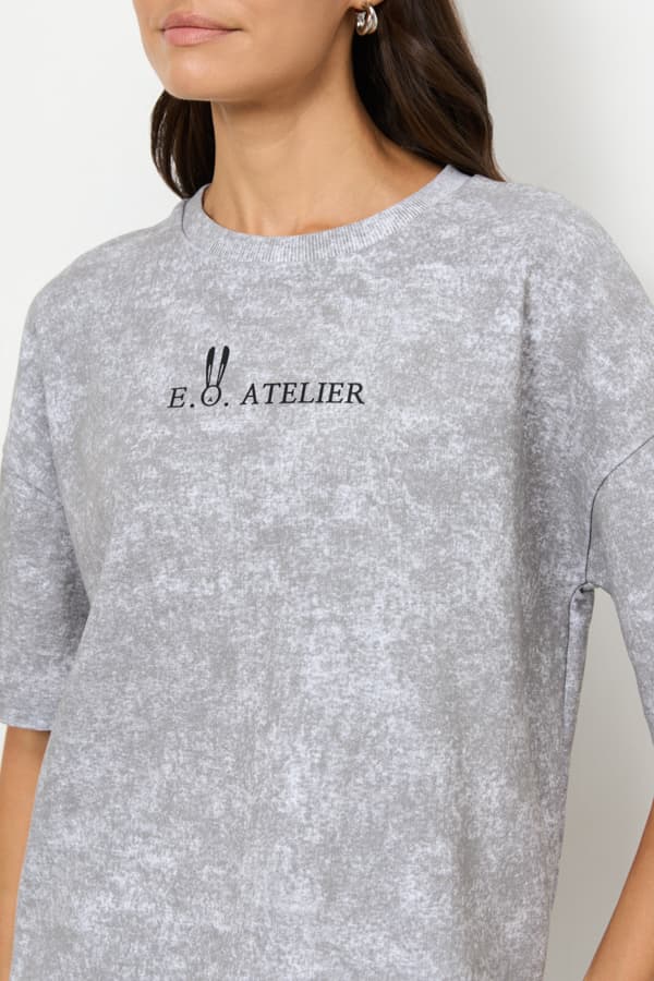Джемпер из футера свободного силуэта. Вырез горловины оформлен бейкой. Втачной короткий рукав в спущенную пройму. В таблице размеров представлены параметры человека, а не изделия.