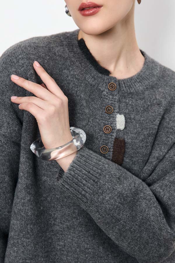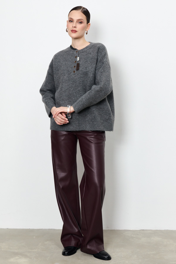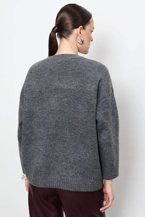 Этот джемпер свободного силуэта станет вашим любимым элементом гардероба. Длинные рукава со спущенной проймой добавляют расслабленности. Круглый вырез горловины, низ изделия и низ рукава оформлены резинкой. Изюминка этой модели – элегантная застежка поло спереди, украшенная декоративными элементами, которая придает джемперу особый шарм. Изделие выполнено из мягкой пряжи.
