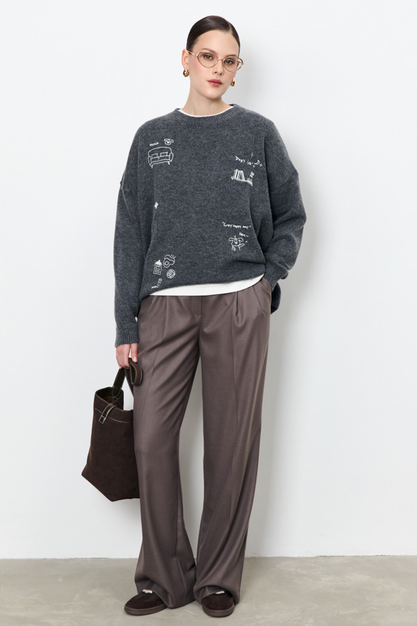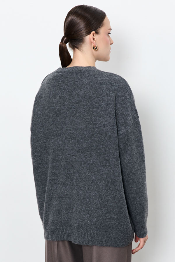 Этот джемпер – воплощение комфорта и стиля. Его свободный силуэт и спущенная линия плеча создают расслабленный, но элегантный образ. Круглый вырез горловины, низ изделия и низ рукава оформлены резинкой. А изящная вышивка на передней части делает эту модель по-настоящему особенной. Изделие выполнено из мягкой пряжи