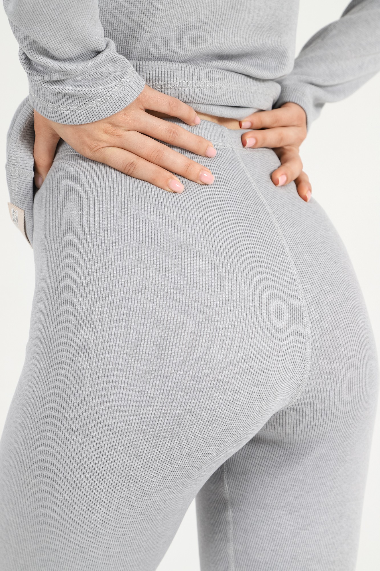 Брюки – длинные, прилегающего силуэта, с эластичной тесьмой по талии. Подгибка верхнего и нижних срезов обработаны пяти ниточной строчкой в цвет основного материала.