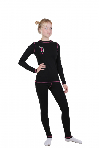 Лонгслив прилегающего силуэта, с втачным длинным рукавом. Использование «плоских» швов при изготовлении комплекта  обеспечивает дополнительный комфорт при  его эксплуатации.