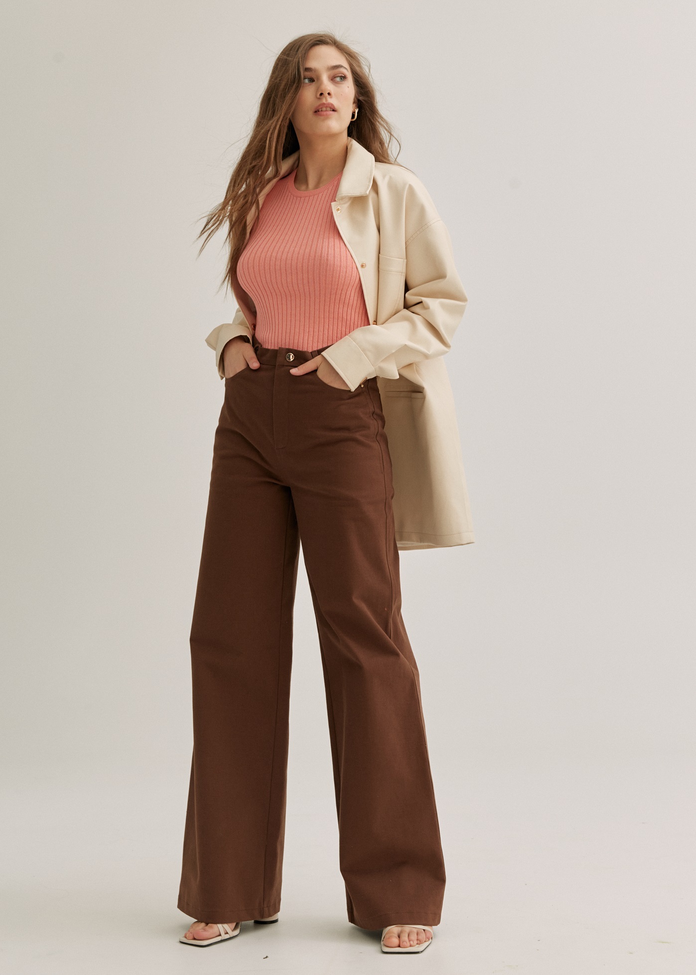 Идеальное решение для жаркого сезона - широкие брюки свободного кроя. По бокам расположены классические брючные карманы. Брюки фиксируются на молнии, скрытой клапаном. Модель универсальная и подойдет под любой образ. Для создания полного монохромного образа рекомендуем сочетать брюки с топом SS 121.010048 из коллекции SevenSenses