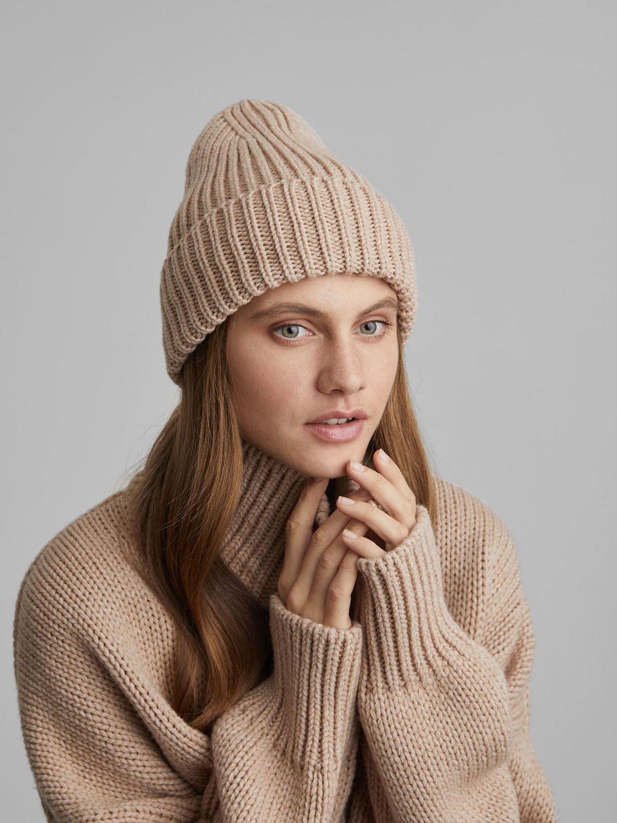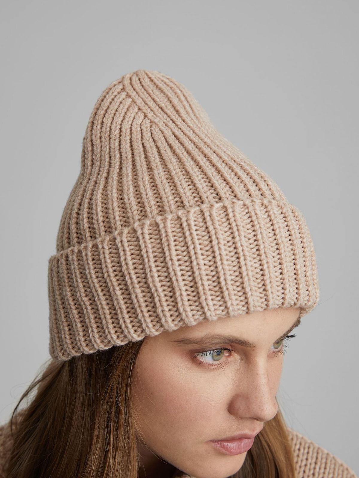 Шапка-бини крупной вязки, бежевый