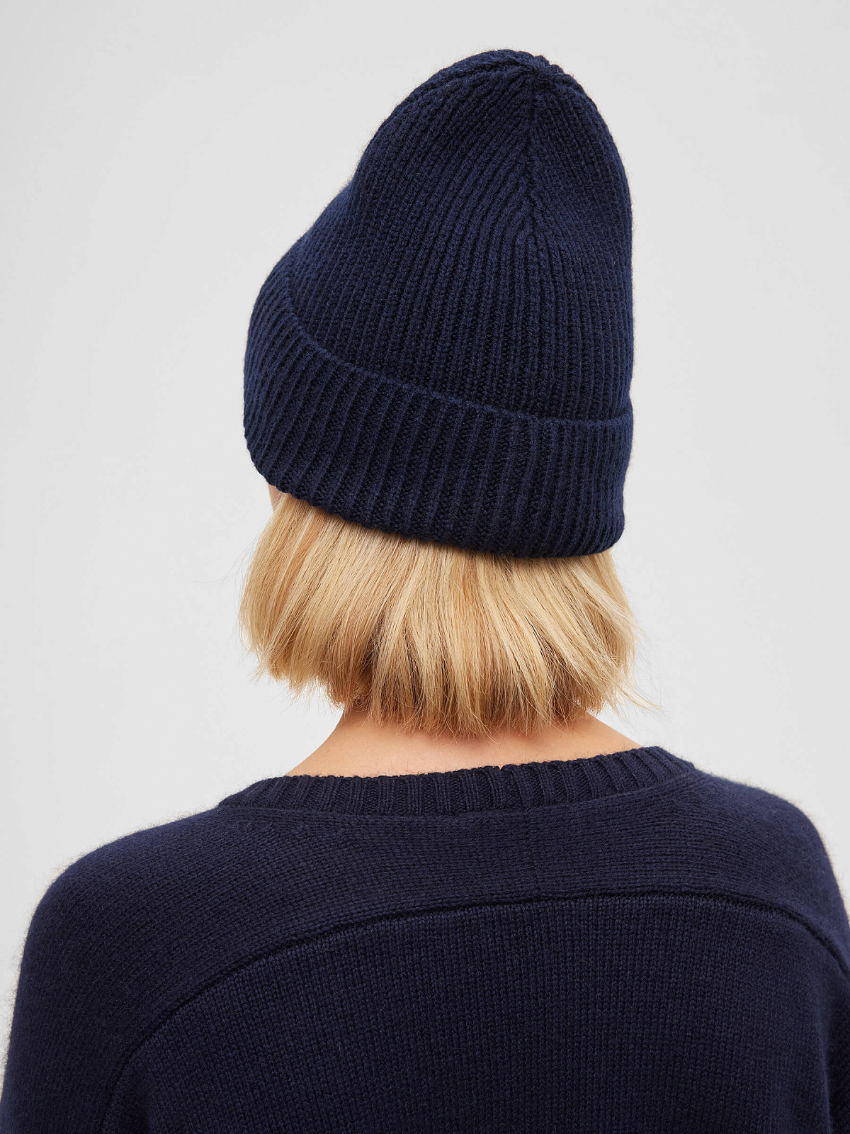 Шапка в рубчик с отворотом и вышивкой, темно-синий
