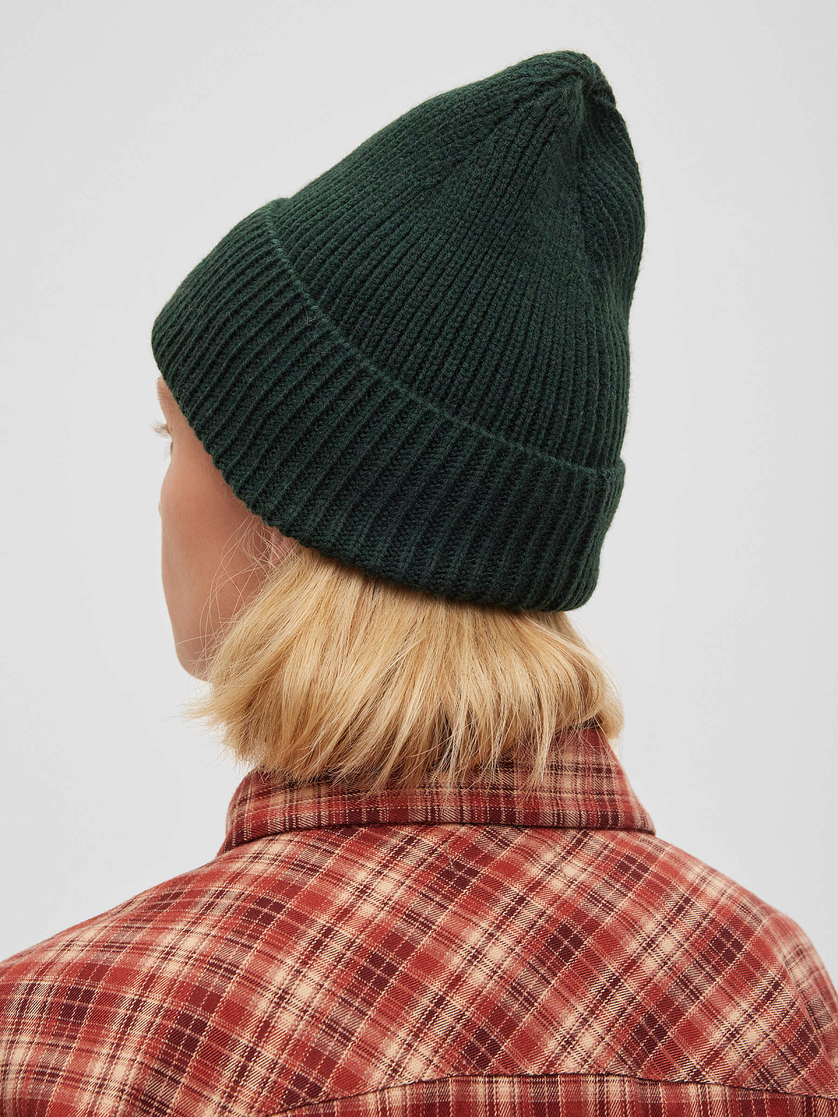 Шапка в рубчик с отворотом и вышивкой, темно-зеленый