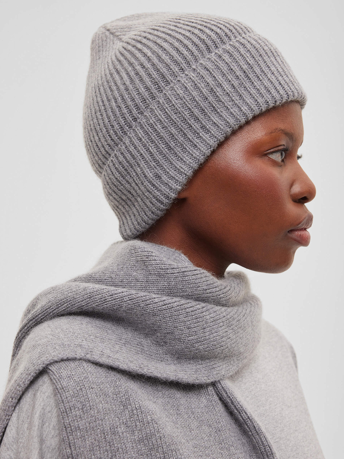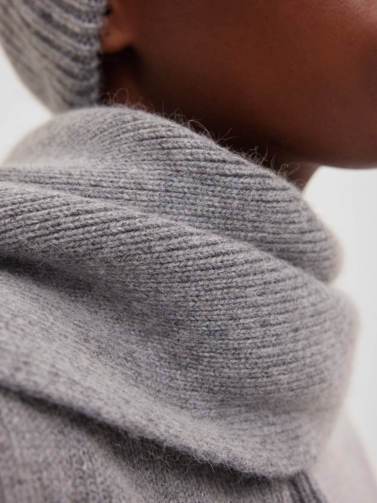Шарф гладкой вязки с ангорой, серый