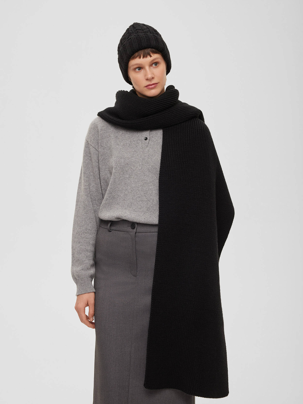 Шарф крупной вязки, черный