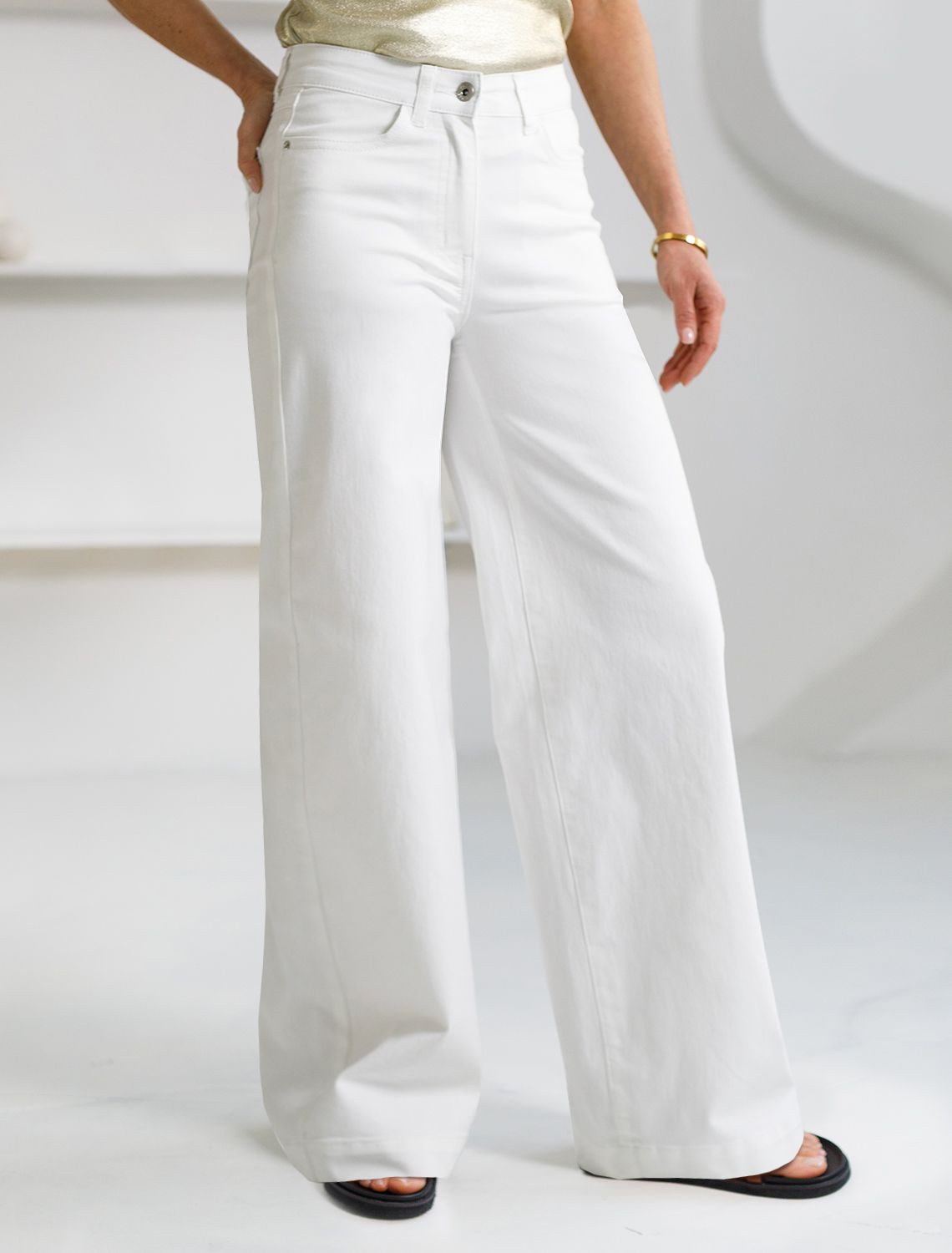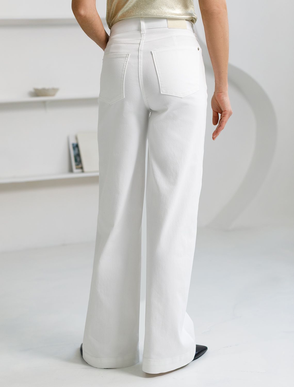 Широкие джинсы белого цвета выполенены из облегченного денима плотностью 8 OZ, они идеально подходят для весны и лета. Свободные джинсы идеально подойдут для девушек и женщин размера plus size (плюс сайз) с широкими бедрами, скроют недостатки и подчеркнут достоинства фигуры, Высокая посадка и прямой крой визуально вытягивают силуэт. Качественная надежная фурнитура делает добавлет образу премиальности. Широкие легкие джинсы не стесняют движений, позволяя чувствовать себя комфортно даже в жаркую погоду. Базовые летние джинсы не только удобные, но и практичные для повседневной носки, благодаря натуральному материалу и продуманному крою. Джинсы трубы всегда актуальны и незаменимыми для базового гардероба.