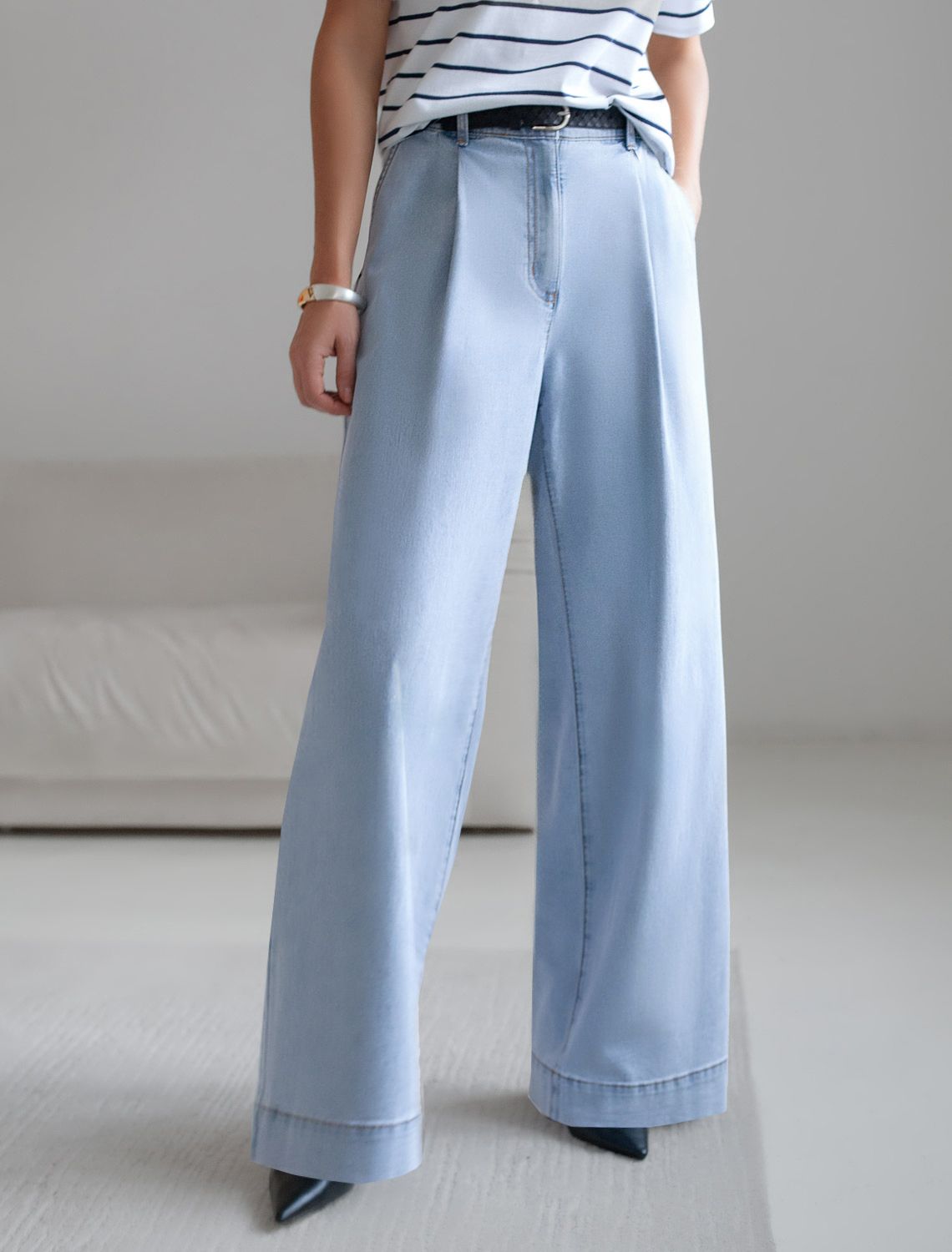 Широкие джинсы с защипами из облегченного денима