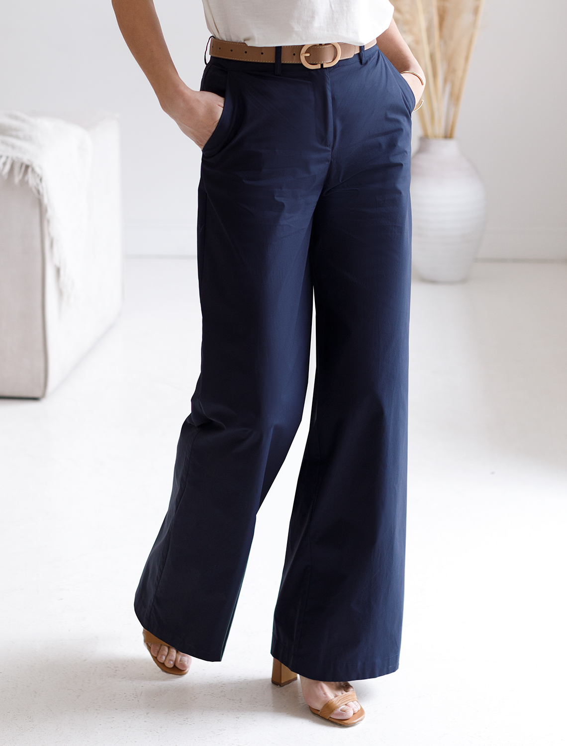 Широкие прямые брюки выполнены из плотного поплина. Натуральный состав ткани обладает высокой воздухопроницаемостью, а также способностью поглощать и отдавать влагу. Подходит для повседневной носки, гарантируя абсолютный комфорт, особенно в жаркое время года. Классическая модель с карманами впишется в любой гардероб.