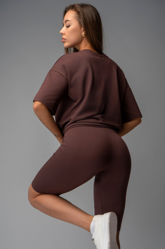 Женский спортивный костюм с велосипедками выполнен из мягкого и приятного к телу трикотажа. Лёгкий и практичный костюм двойка сочетает комфорт и стиль, идеально подходит для повседневных образов, фитнеса и прогулок.