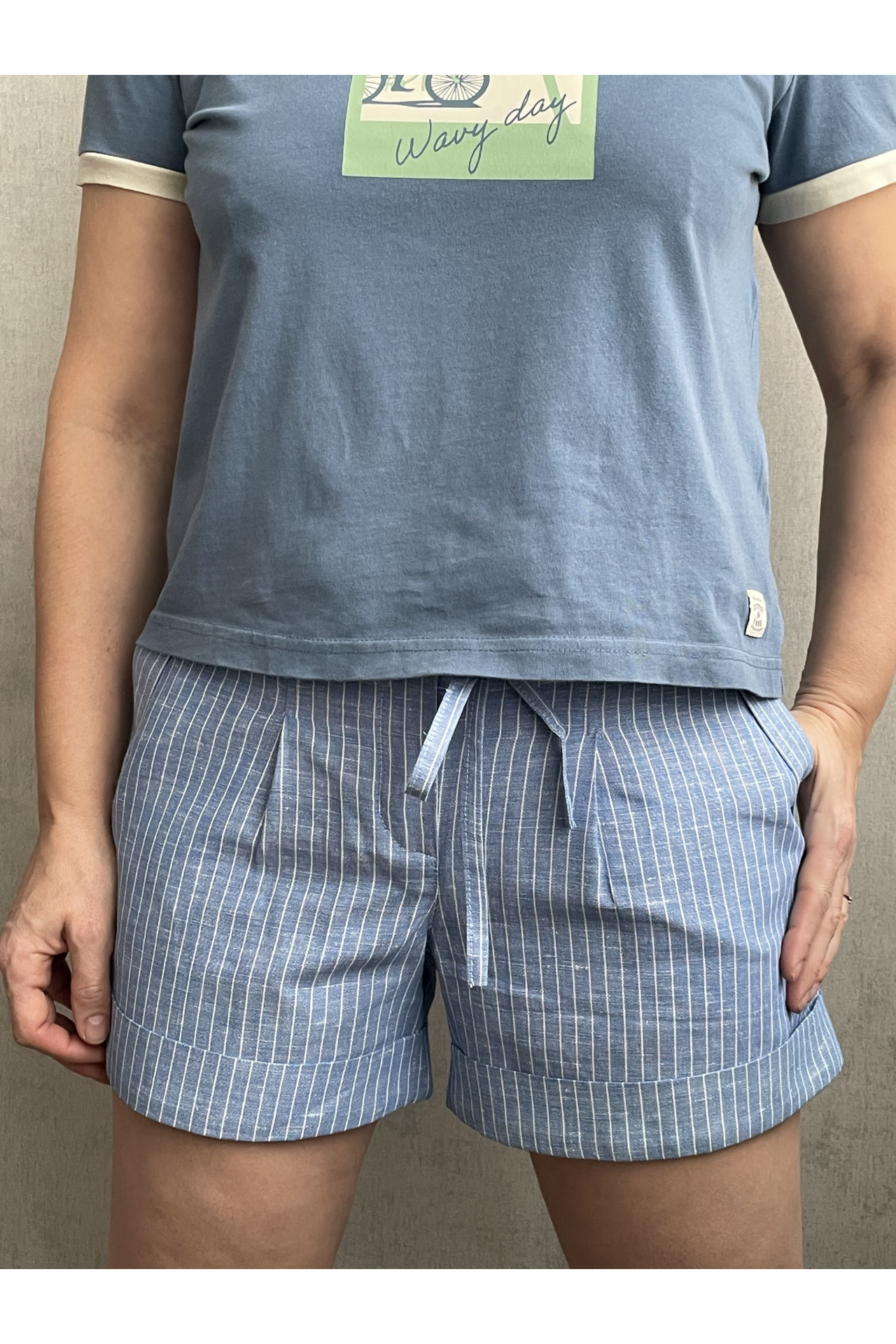 Льняные и полульняные шорты. Посадка средняя.  Имеют 2 боковых кармана, по линии талии во