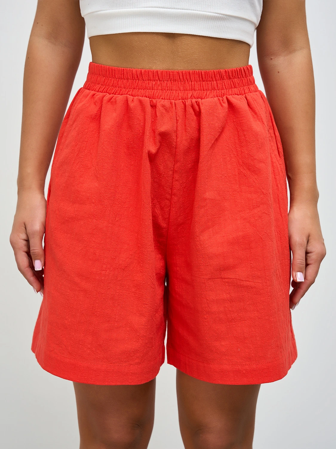 Шорты с притачным поясом на широкой резине.