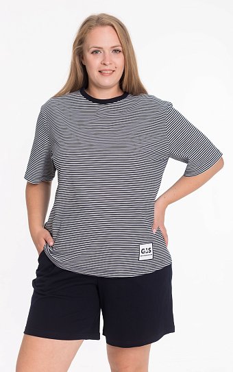 Женский костюм, состоящий из футболки и шорт, — отличный выбор для дома, отдыха и активного досуга. Футболка с коротким рукавом, горловина аккуратно обработана бейкой из отделочного полотна, спереди украшена стильной нашивкой. Шорты имеют комфортный пояс на резинке и удобные боковые карманы. Лёгкий и практичный комплект обеспечивает свободу движений и комфорт в течение всего дня.