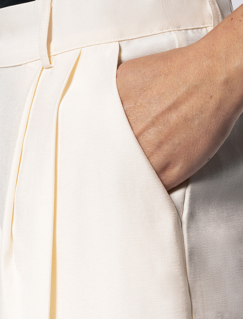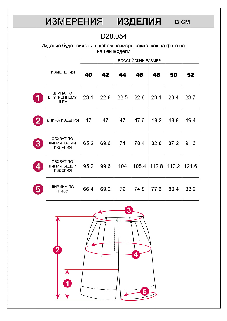 Шорты выполнены из плотного лиоцела. Добавление синтетических волокон в составе изделия предотвращает сминаемость. Эластичный пояс на резинке фиксирует изделие не сковывая движений. Есть дополнительные шлевки для ремня. Свободная модель дополнена боковыми карманами и металлическим логотипом бренда. Для создания завершенного образа сочетайте в костюме с топом D23.058, блузкой D28.054, D29.238, D29.239 и D29.240 70%Лиоцелл (Вис) 30%ПЭ