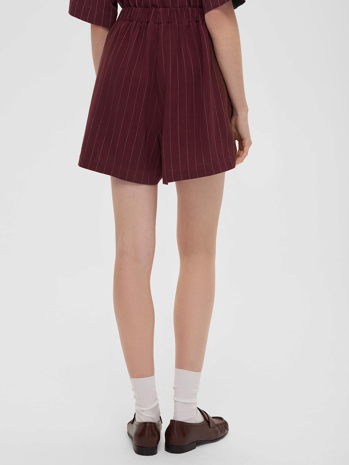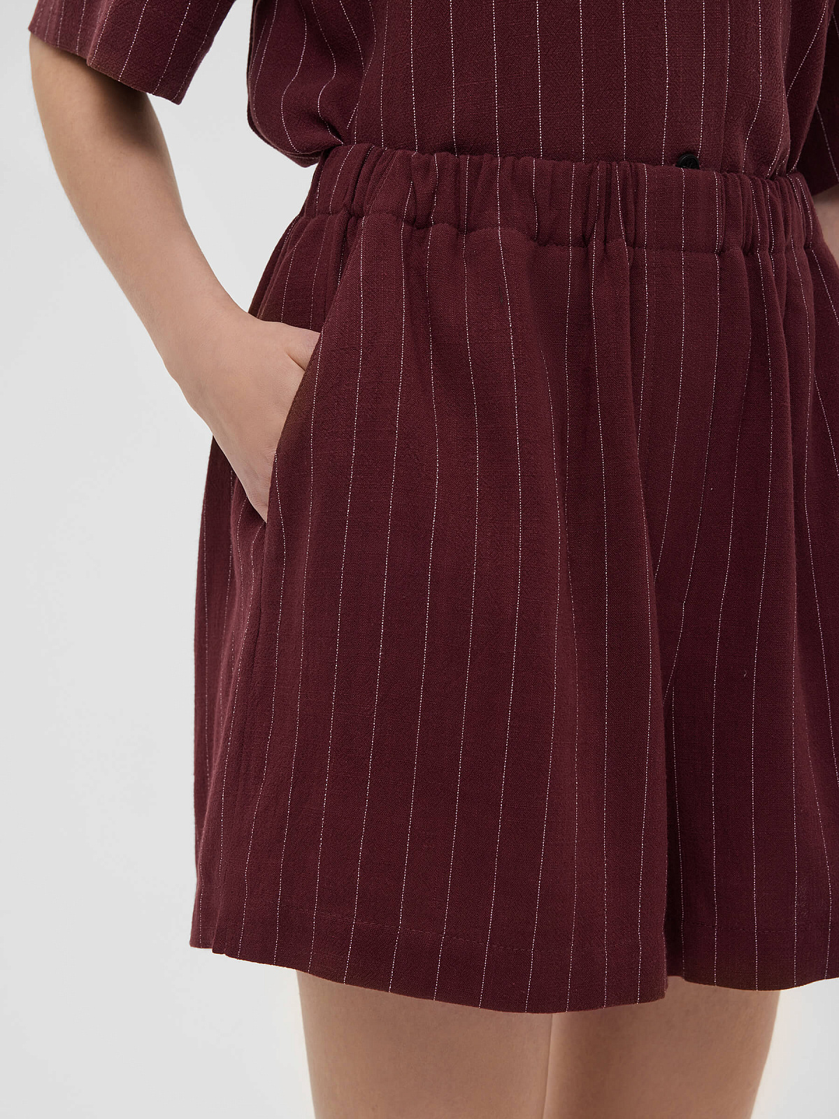 Шорты льняные в полоску 0198, бордовый