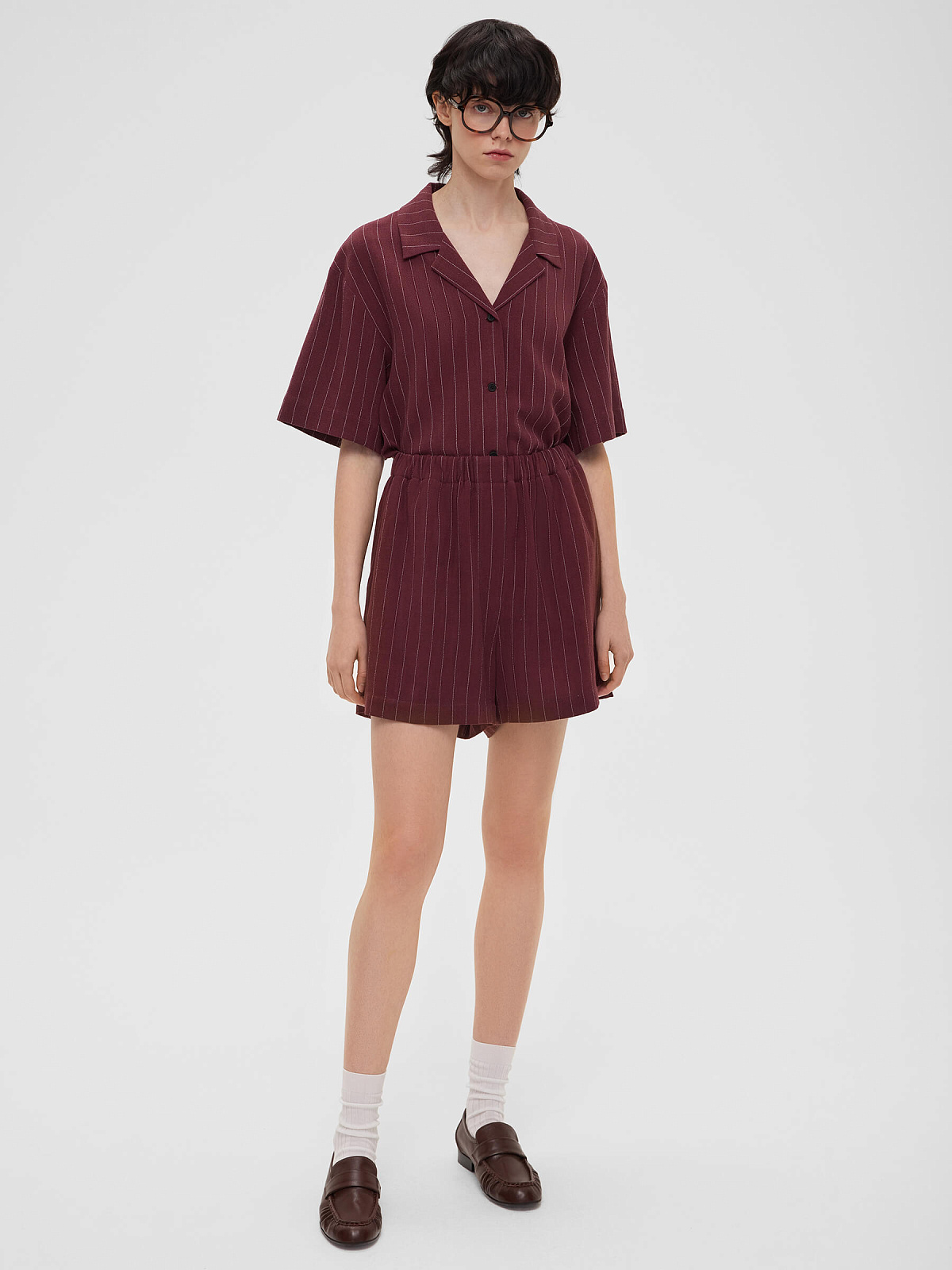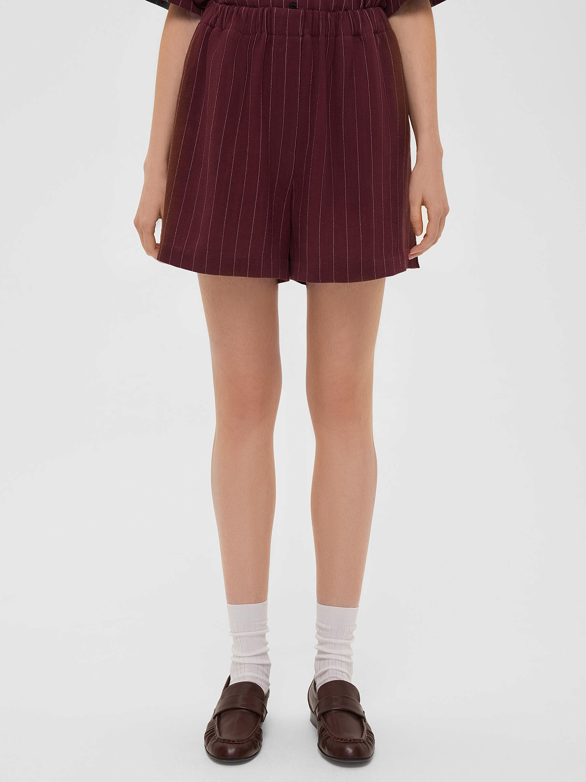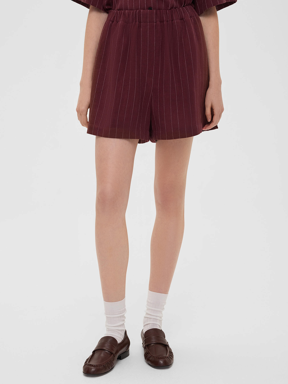2129р3275рШорты льняные в полоску, бордовый