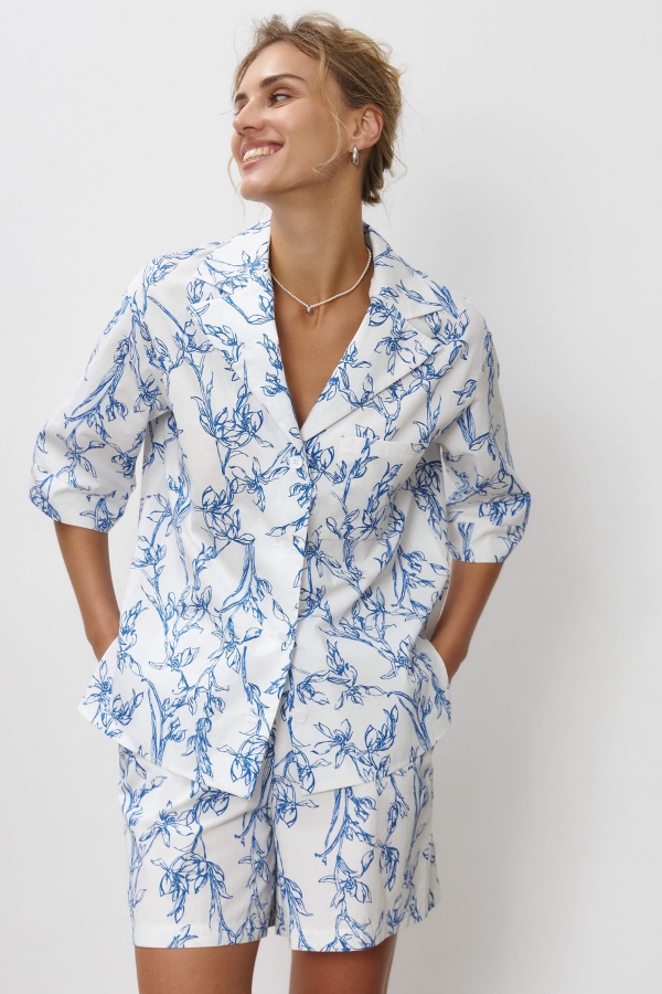 Шорты из хлопка с эксклюзивным принтом. Модель свободного силуэта на резинке с карманами.