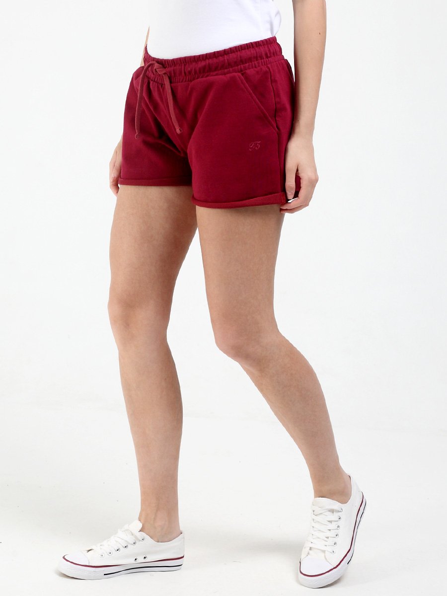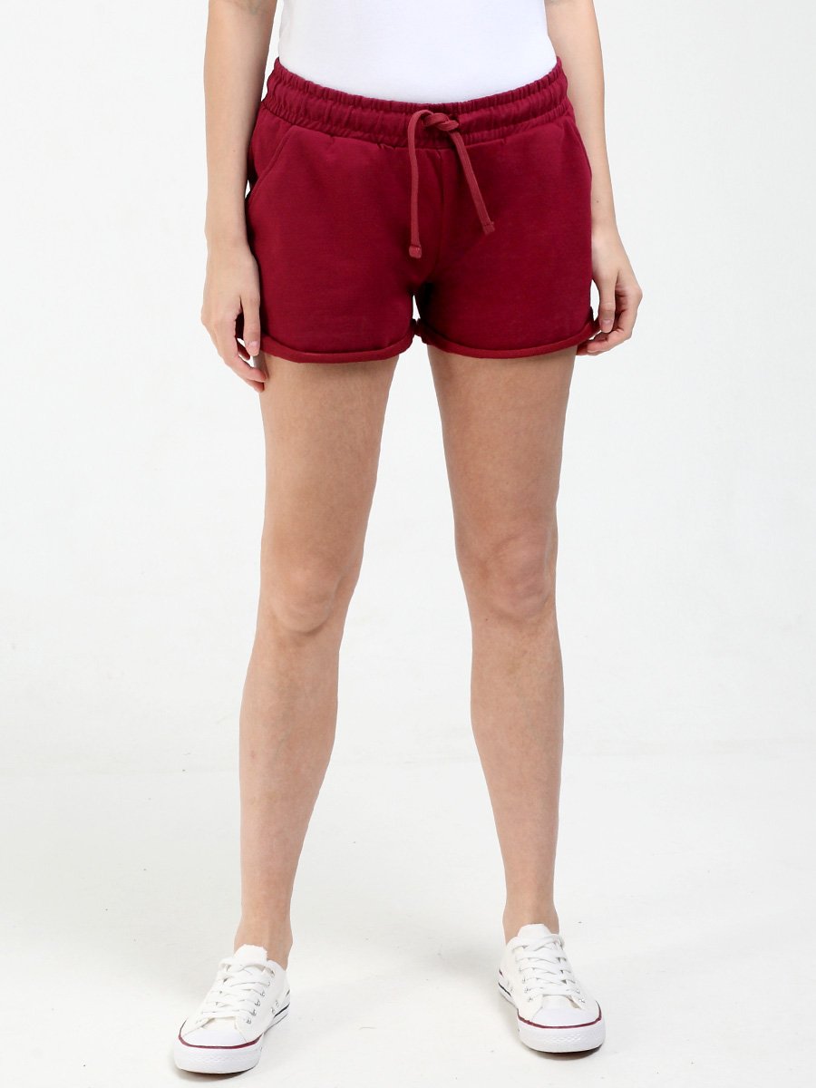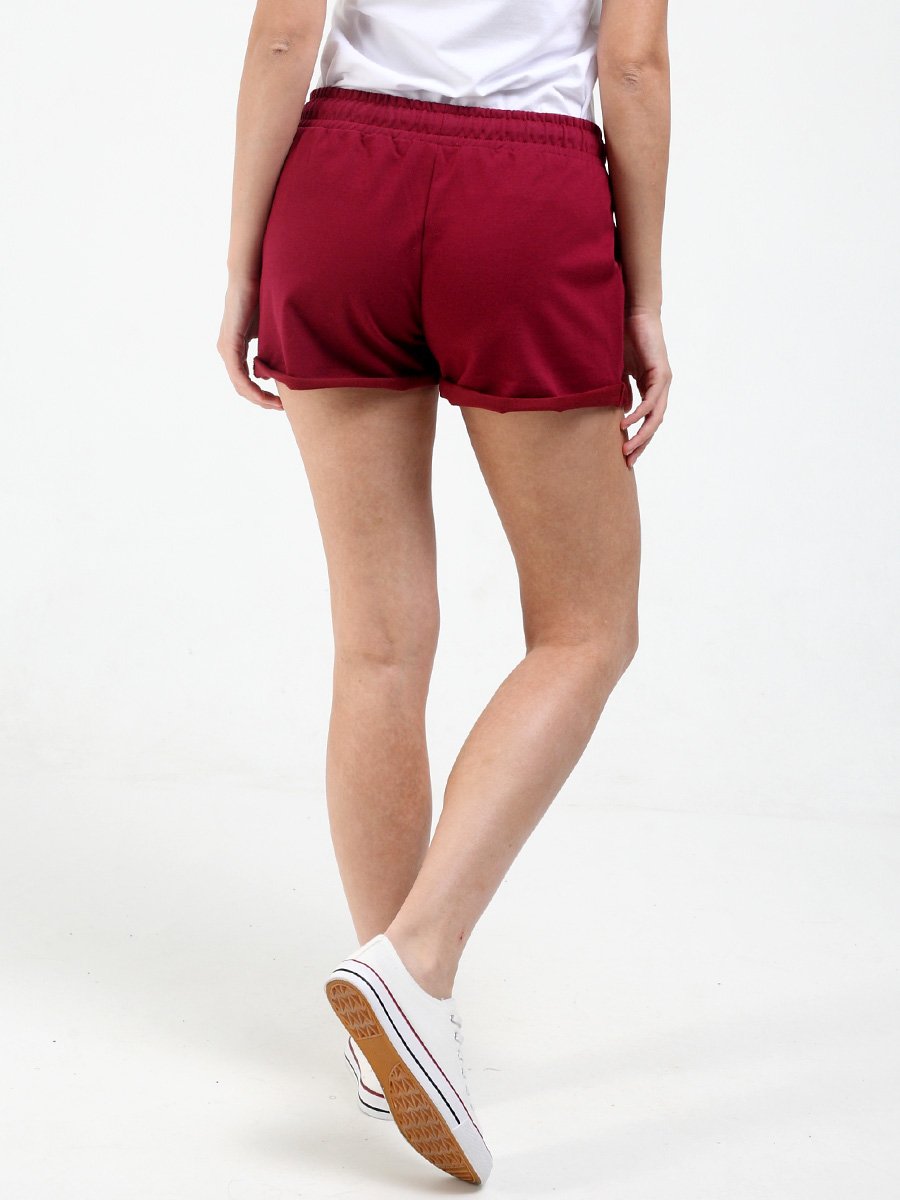 Женские трикотажные шорты, выполнены из хлопкового полотна с добавлением полиэстра. Приятны при контакте с кожей, не сковывают движения. В боковых швах глубокие карманы. По низу зафиксированные подвороты. В поясе шорты собираются широкой резинкой. Дополнительно в поясе имеется шнур.