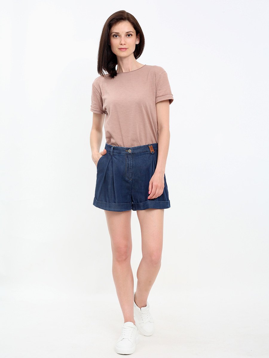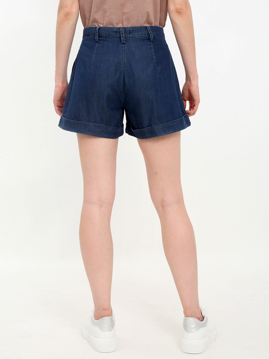 Женские шорты в стиле casual. Посадка Comfort fit (свободные по бедру),  широкие, по низу шорт манжеты. Высокая  талия. Застежка на молнии. Спреди для  свободы движения две встречные скдадки. Сзади для улучшения  посадки  две  вытачки . Выполнены из мягкой, тонкой  x/б ткани denim . Классическая темная машинная стирка  с потертостями по швам. Параметры указаны для размера 28. Длина внутреннего шва для размеров 26-29 - 10,0 см., для размеров 30-31 - 11,0 см.,32-33 - 12,0 см