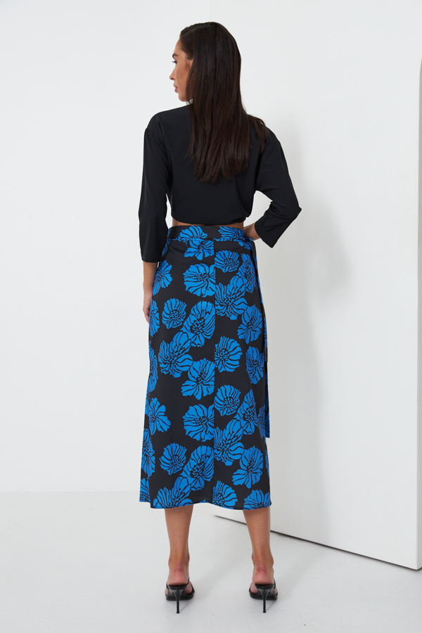 Юбка с запахом на широких завязках из вискозной ткани. Прямой силуэт с притачным поясом. Изделие с запахом не только выглядят интересно, но и делают фигуру более гармоничной.