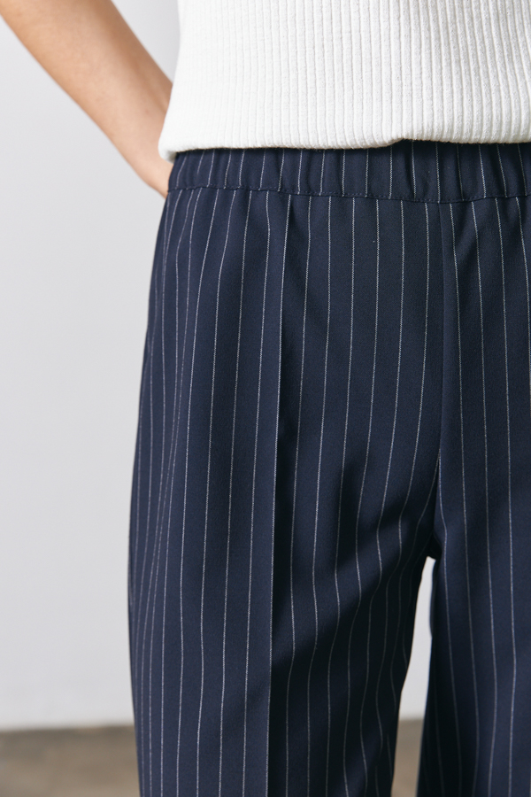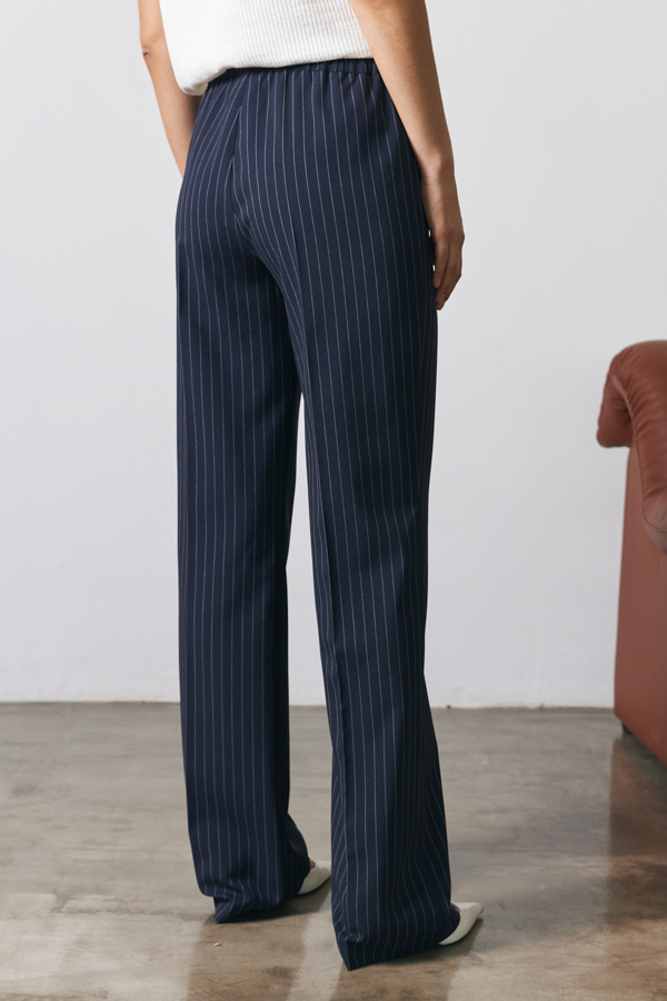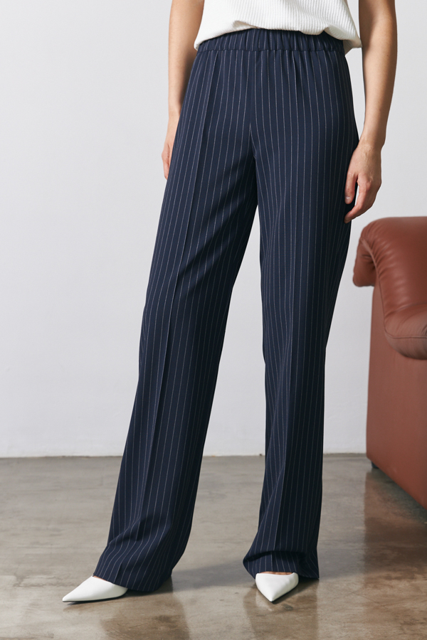 Брюки прямого силуэта из костюмной ткани. Пояс притачной с эластичной резиной.