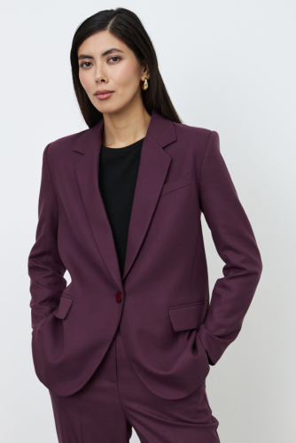 Кардиган из эластичного полотна свободного силуэта. Втачной длинный рукав в спущенную пройму. Линия борта обработана притачной планкой с застёжкой на пуговицы.
