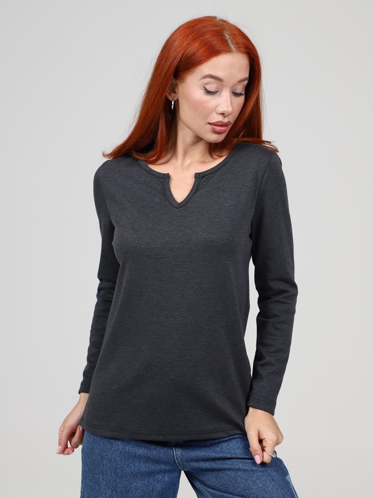 Женский лонгслив «Синти» выполнен из трикотажного приятного к телу полотна "милано". Не глубокий фигурный вырез и комфортная посадка по фигуре. Модель прямого силуэта, с длинным рукавом, длиной до уровня бедер. Хорошо сочетается с любой одеждой.