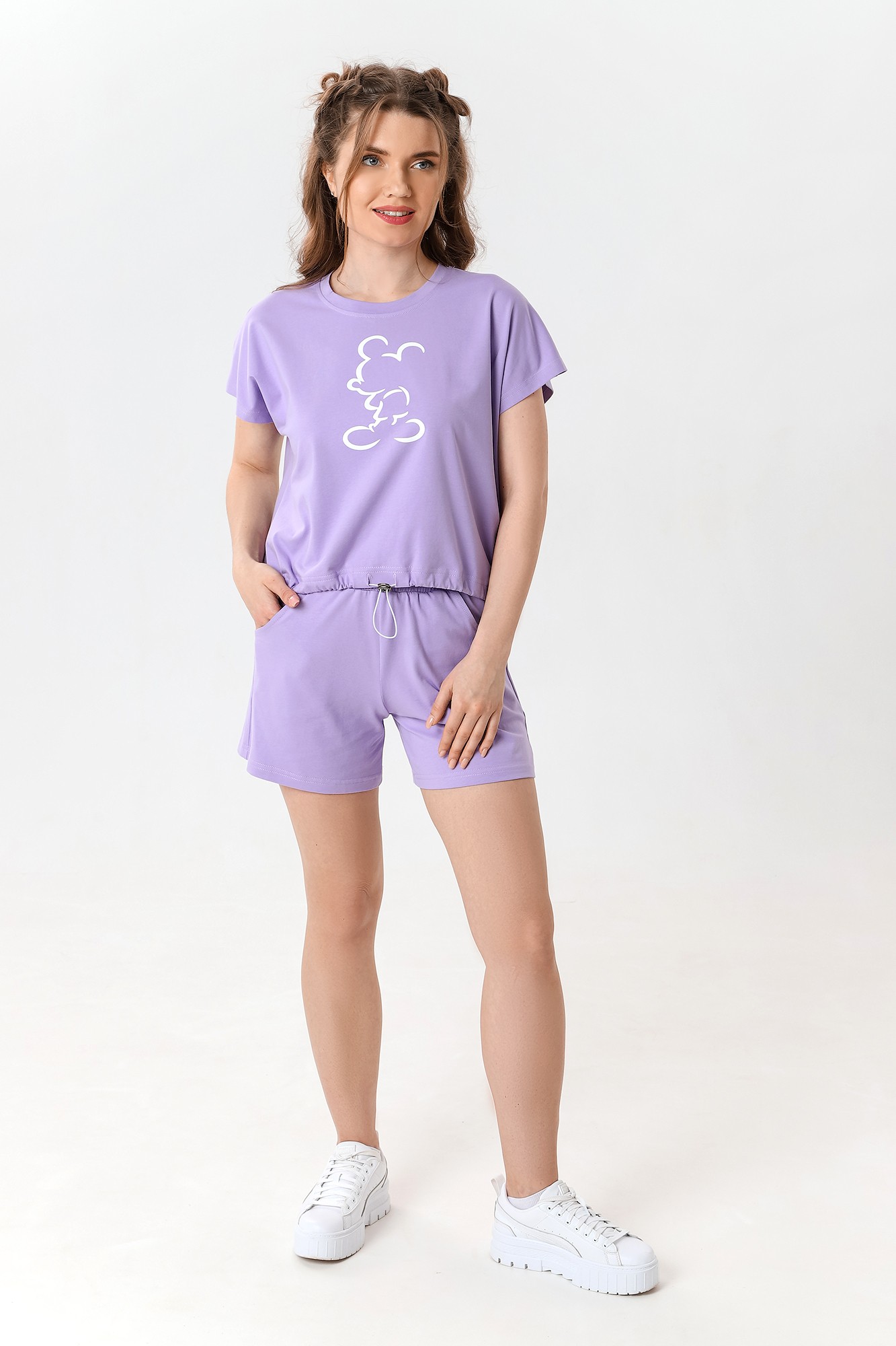 Костюм из гладкокрашеного трикотажного полотна «кулирка с лайкрой», состоящий из футболки и шорт.